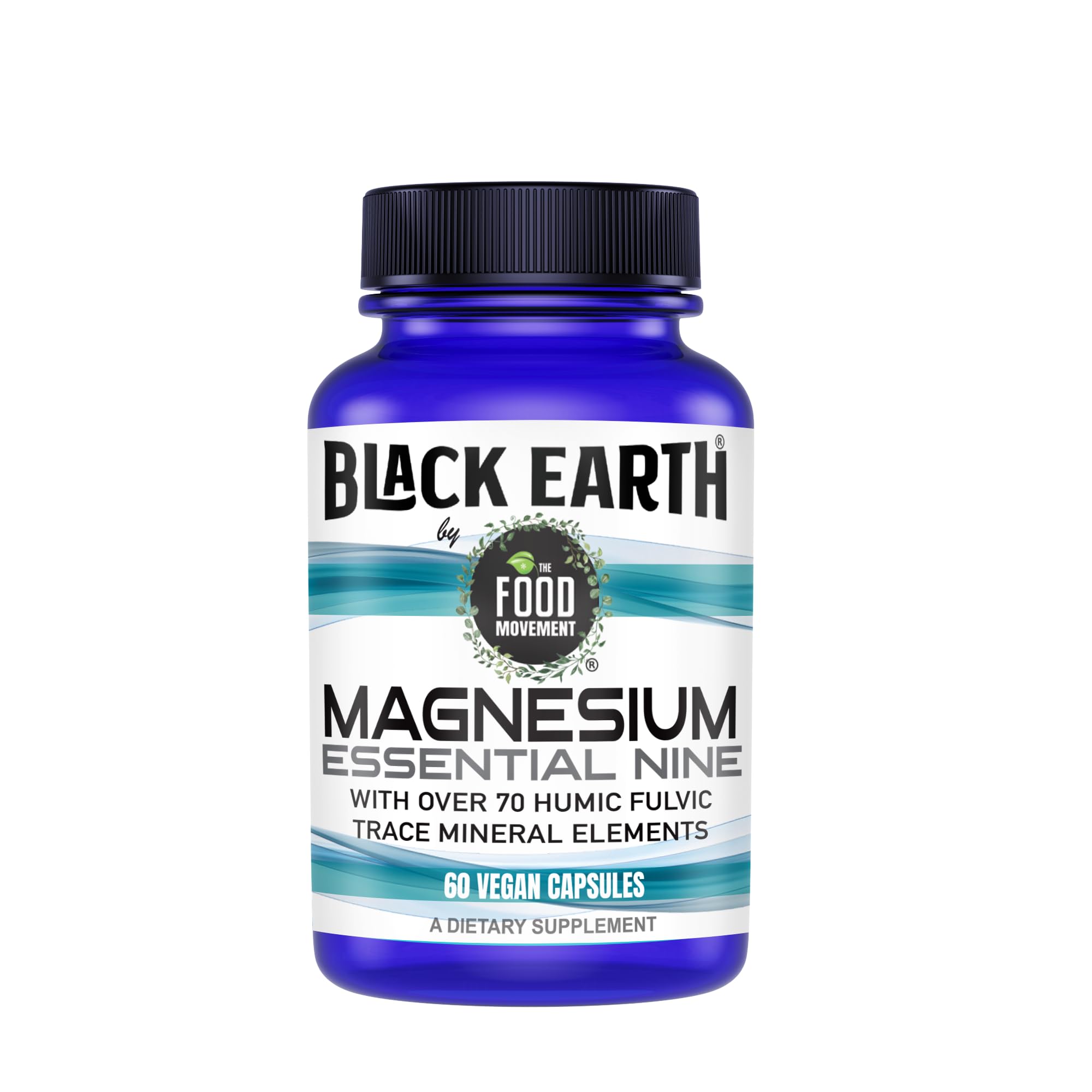 Introducing Black Earth Magnesium Essential Nine by The Food Movement Co., a groundbreaking formula designed to support relaxation and overall well-being. This unique product features a Magnesium Blend with 9 bioactive forms, ensuring you receive the comprehensive benefits of this essential mineral. Each of the 60 vegan capsules is crafted with plant-based nutrition in mind, making it suitable for those adhering to a vegan lifestyle. Our formula is rooted in a humic fulvic acid base, a natural source that enhances the bioavailability of magnesium, ensuring that your body absorbs and utilizes it effectively. The inclusion of chelated magnesium, in forms such as magnesium glycinate, magnesium citrate, and magnesium malate, ensures that Black Earth Magnesium Essential Nine supports healthy muscle function and bone health, while also helping to alleviate muscle cramps. The Food Movement Co. understands the importance of quality and efficacy, which is why this product is crafted in a GMP-certified facility. This guarantees that every capsule meets the highest standards of safety and purity. Our magnesium blend includes highly absorbable forms like magnesium taurinate and magnesium amino acid chelate, ensuring that you receive the full spectrum of benefits this mineral has to offer. Moreover, with the addition of magnesium carbonate, magnesium hydroxide, and magnesium fulvate humate, this product provides a multi-form approach, catering to various bodily needs. The trace minerals included further enhance the product's ability to support relaxation and overall health. Whether you're looking to support bone health or enhance your body's ability to relax and unwind, Black Earth Magnesium Essential Nine is your go-to choice. Trust The Food Movement Co. to deliver a scientifically formulated product that aligns with your health goals. Experience the synergy of 9 bioactive forms of magnesium and embrace a new level of wellness with every capsule.GMP Certified Quality: Produced in a GMP-certified facility, Black Earth Magnesium ensures the highest quality standards in delivering a potent magnesium blend that supports relaxation, bone health, and muscle function, with no compromise on safety. Supports Relaxation and Muscle Health: This supplement supports relaxation and helps alleviate muscle cramps, thanks to its highly absorbable magnesium blend, featuring magnesium glycinate and magnesium amino acid chelate, promoting healthy muscle function. Plant-Based Nutrition: Our magnesium blend is rooted in plant-based nutrition, providing a sustainable source of essential minerals such as magnesium glycinate, magnesium citrate, and magnesium malate, all working synergistically for overall well-being. Trace Minerals for Enhanced Absorption: Infused with trace minerals and a humic fulvic acid base, these vegan capsules are designed to support bone health and ensure that the magnesium blend, including magnesium fulvate humate, is efficiently utilized by the body. Comprehensive Magnesium Blend: Our Black Earth Magnesium capsules feature a multi form magnesium blend with nine bioactive forms, including amino acid chelated magnesium, magnesium bisglycinate, and Sucrosomial magnesium, ensuring optimal absorption and efficacy.