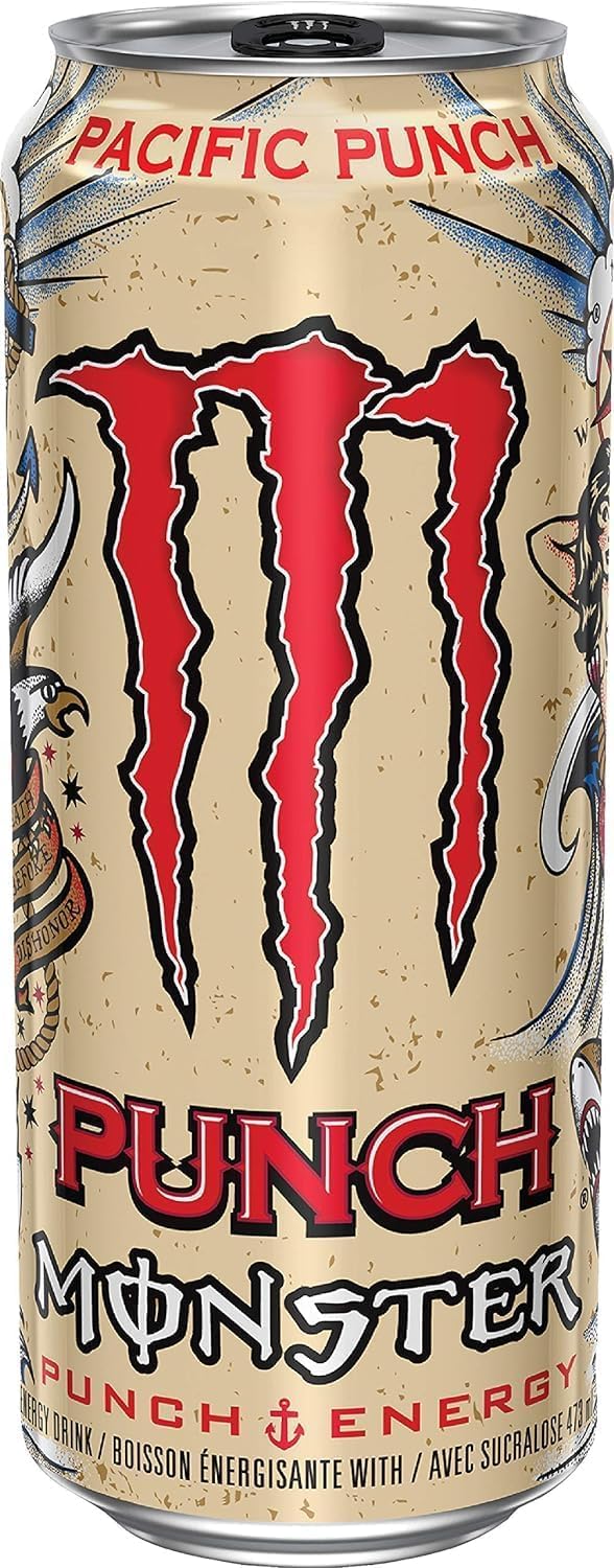 Energy Pacific Punch is a tropical-flavored energy drink that combines the bold taste of Energy with a blend of fruit juices. It is part of the "Juiced" range, offering a mix of energy and fruit juice in one can. INGREDIENTS Carbonated water, sugar, glucose, citric acid, flavorings, tannin, sodium citrate, grape skin extract (color), panax ginger root extract, caffeine, sorbic acid, benzoic acid, niacinamide, salt, D-glucuronolactone, seed extract, inositol, pyridoxine hydrochloride, sucralose, riboflavin, maltodextrin, cyanocobalamin.