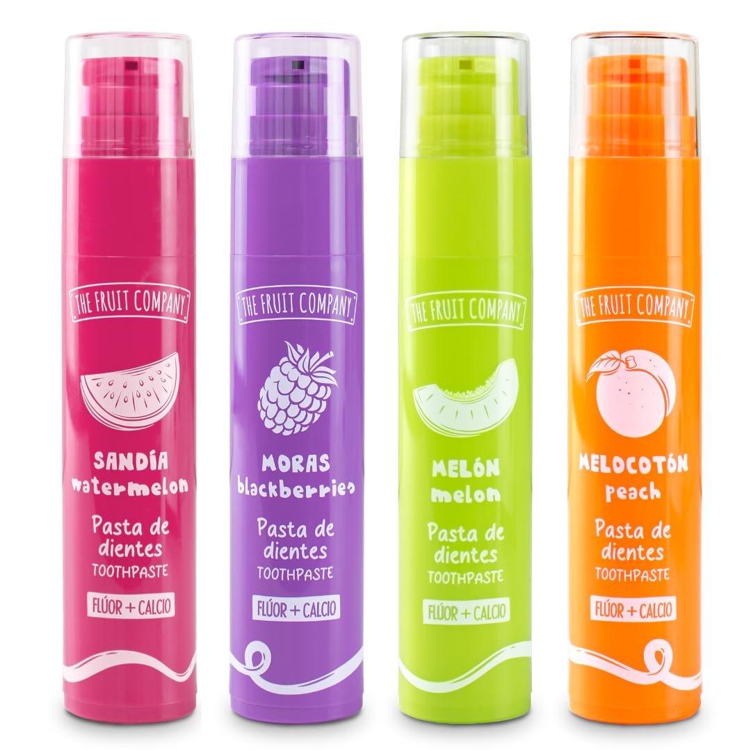 THE FRUIT COMPANY The Fruit Company Fluoride and Calcium Toothpaste (Watermelon Blackberry Melon Peach). Pack of 4