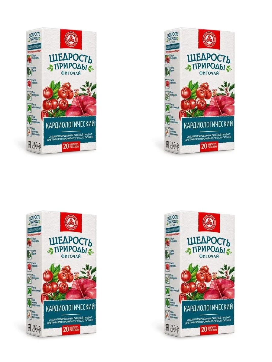 щедрость природы фиточай кардиологический 2,0 n20 ф/п. способствует поддержанию в норме артериального давления, способствует улучшению функционального состояния сердечно-сосудистой системы специализированный пищевой продукт диетического профилактического питания, при повышенном артериальном давлении и функциональных расстройствах сердечно-сосудистой системы плоды боярышника, листья березы, цветки гибискуса, трава пустырника, листья мяты перечной, трава мелиссы лекарственной, корни шлемника байкальского щедрость природы фиточай кардиологический - специализированный пищевой продукт диетического профилактического питания.• рекомендован при повышенном артериальном давлении и функциональных расстройствах сердечно-сосудистой системы.• способствует поддержанию в норме артериального давления• способствует улучшению функционального состояния сердечно-сосудистой системы• 100% натуральный продукт1 фильтр-пакет залить 1 стаканом (200 мл) кипятка, настоять 15 минут, отжать фильтр-пакет или процедить, довести объем до 200 мл.рекомендации по применению: взрослым по 1 стакану 2 раза в день во время еды. продолжительность приема - 1 месяц. при необходимости прием можно повторить.