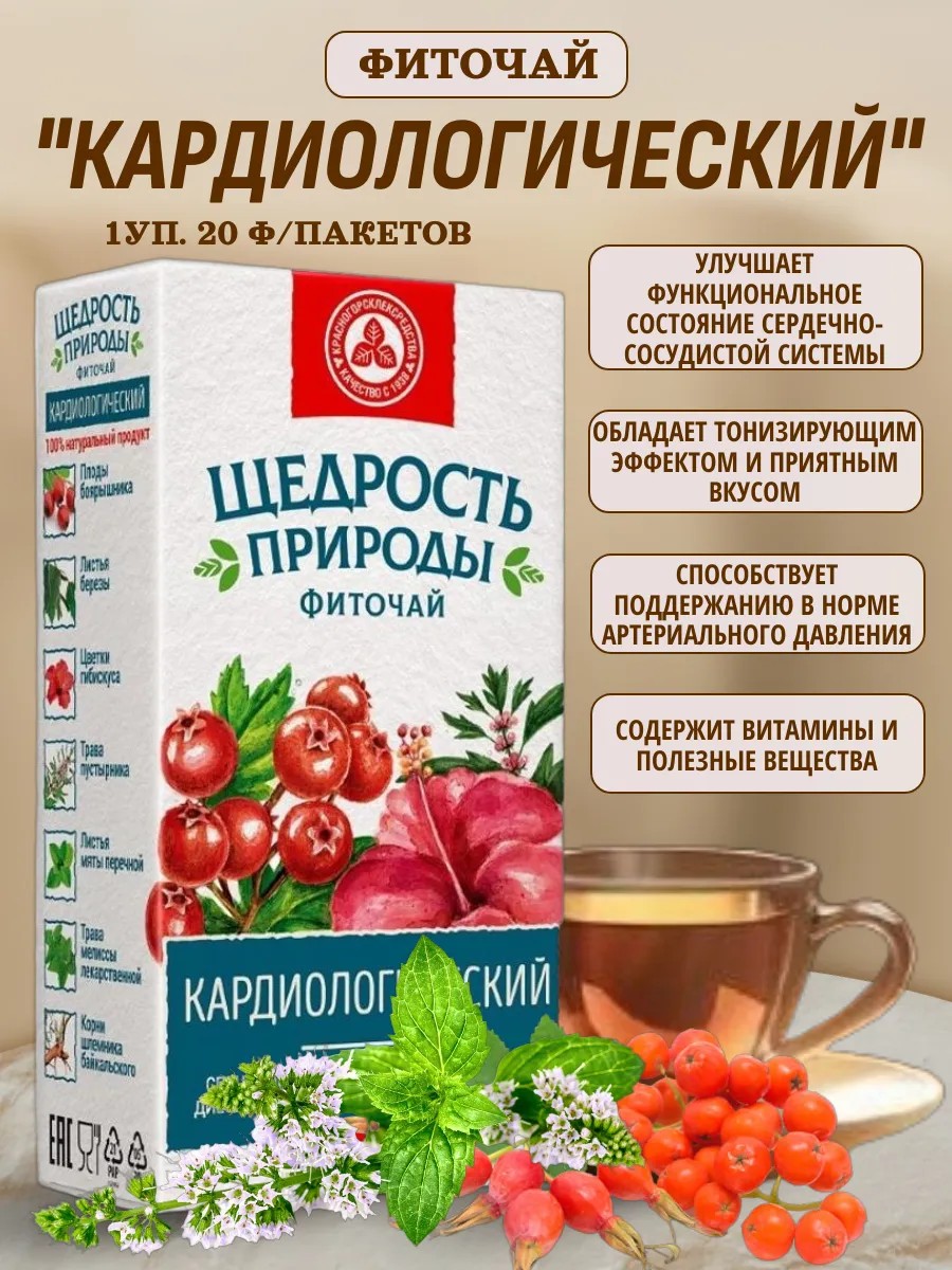 Фиточай "Кардиологический" натуральный и безопасный продукт, который можно использовать в качестве дополнения к основному рациону питания для поддержания здоровья сердечно-сосудистой системы и общего благополучия. Фиточай имеет противопоказания, перед применением рекомендуем проконсультироваться с врачом.