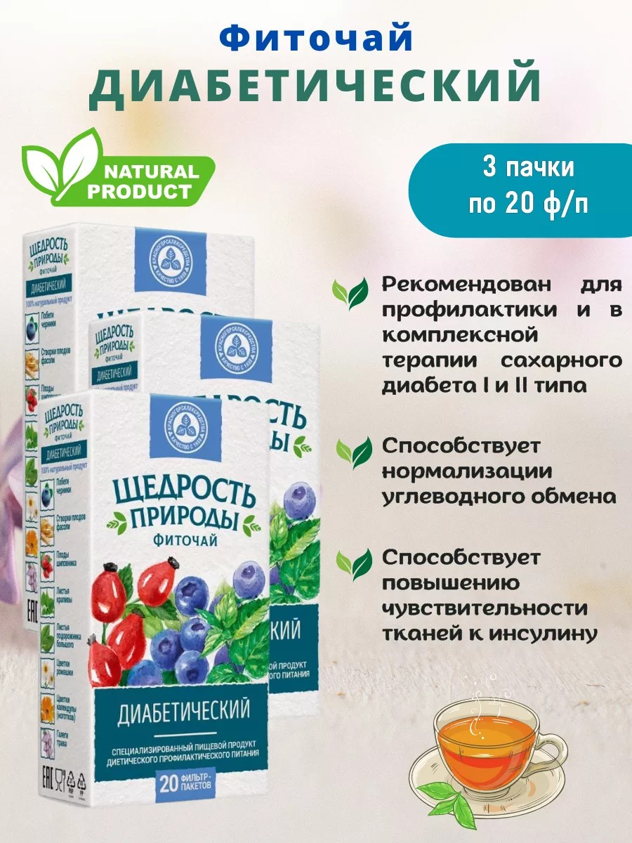 Щедрость Природы Фиточай диабетический - специализированный пищевой продукт диетического профилактического питания.