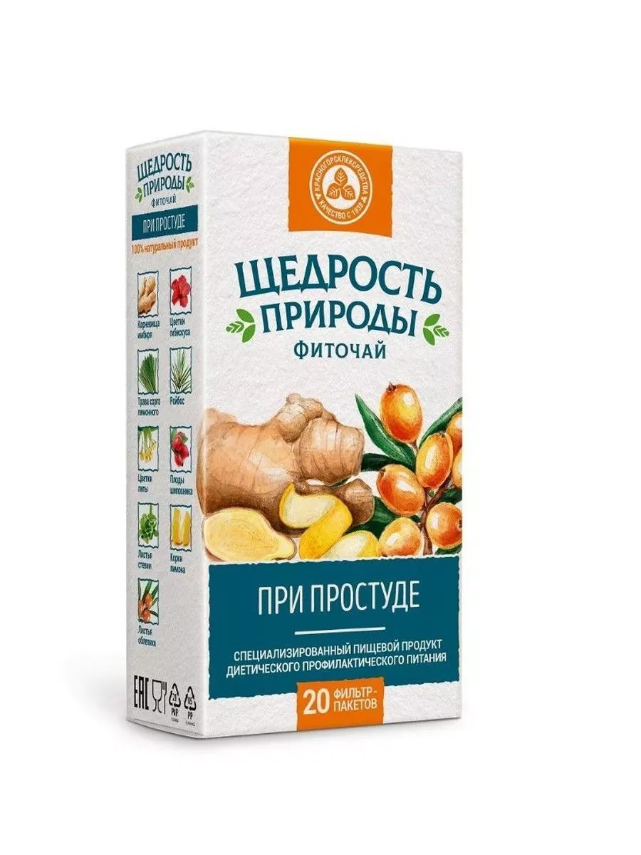 ЩЕДРОСТЬ ПРИРОДЫ ФИТОЧАЙ ПРИ ПРОСТУДЕ 2,0 N20 Ф/ПЩедрость природы Фиточай при простуде - специализированный пищевой продукт диетического профилактического питания00