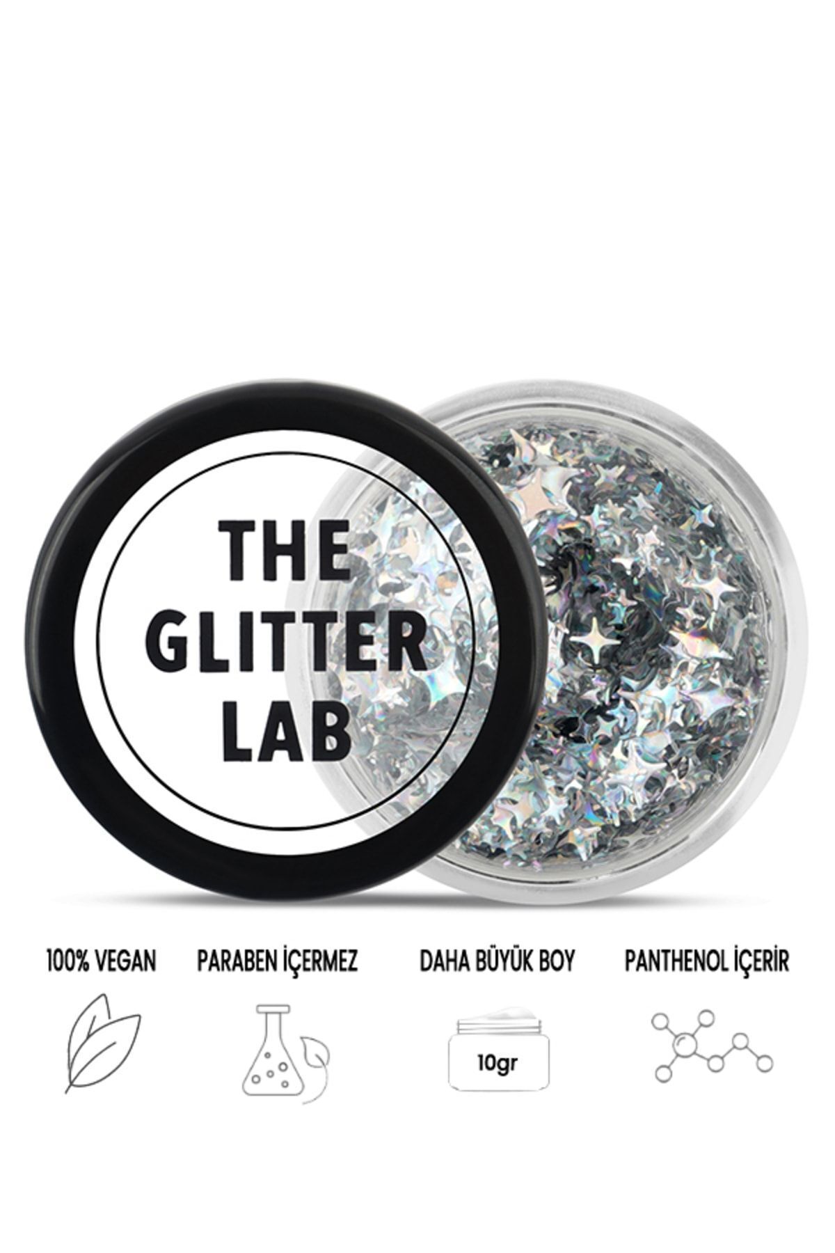 Color: Metallic Space. Weight: 10gr. Color Features: Consists of four-pointed silver stars. These stars give reflections in silver, green, orange and yellow tones depending on the angle of light. What is Glitter Gel? Moisturizing gel-based glitters are a quick way to catch the latest trend in makeup and create a bold look or add sparkling details to your makeup. The super-durable formula of glitter gels is unique. It can replace eyeshadow or illuminator as a daily makeup look. It is also suitable for festival makeup or body decoration during photo shoots. Water-based glitter gel is hypoallergenic You can use 10 gr products an average of 55-80 times depending on your usage frequency. How to Use? You can apply gel-based glitters with your makeup brush or finger as you wish. It is recommended that you apply by avoiding circular movements to create a smooth and thick layer. It is recommended to wait 10 minutes after application for it to dry completely. Avoid touching the applied area during this time. To remove the product, wash only with water. (It is not recommended to wipe it with a make-up remover cotton, as it will cause the product to spread and will tire your skin. ) When using glitter gels for your eye make-up, avoid contact with the inside of the eyes.