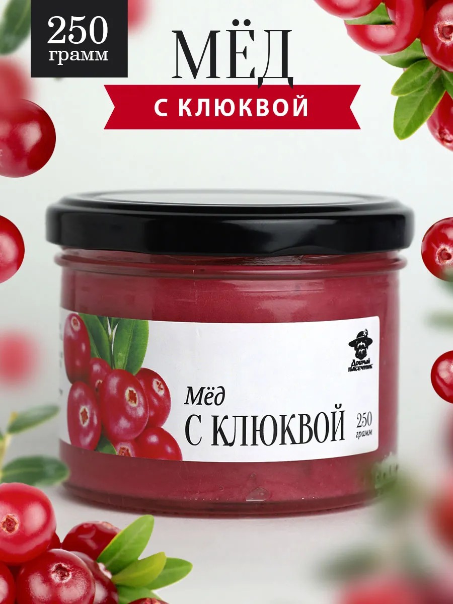 Добрый пасечник Мед с клюквой 250 г в стеклянной банке