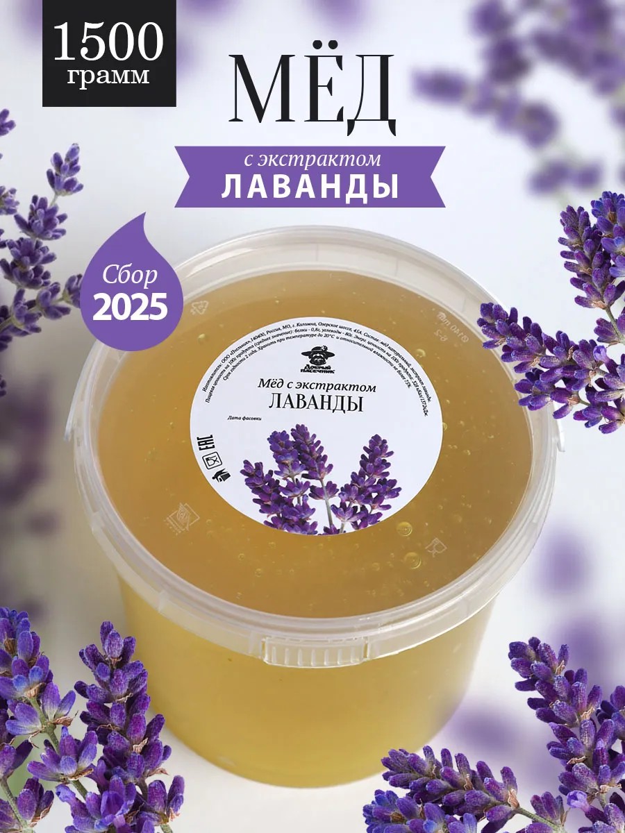 Honey with lavender extract is a highly valuable and delicious product. It is made using high-quality flower honey and natural lavender flower extract. Lavender extract has numerous beneficial properties. It has a calming, softening, antiseptic, and antispasmodic effect on the human body. Furthermore, honey with organic lavender extract improves blood circulation and activates metabolism. Lavender honey has a delicate consistency, a sweet honey-floral flavor, and a pleasant herbal aroma with woody undertones. Lavender extract has proven itself in the food industry, being used in beverage production and confectionery. Lavender has become a natural part of Russia; its plantations are found throughout the south, especially in Crimea. Organic lavender extract is a domestically produced raw material, abundant, and of excellent quality. When combined with natural farm honey, you get a healthy and delicious product that can be consumed daily to support immunity, or added to porridge, cottage cheese, or spread on toast.