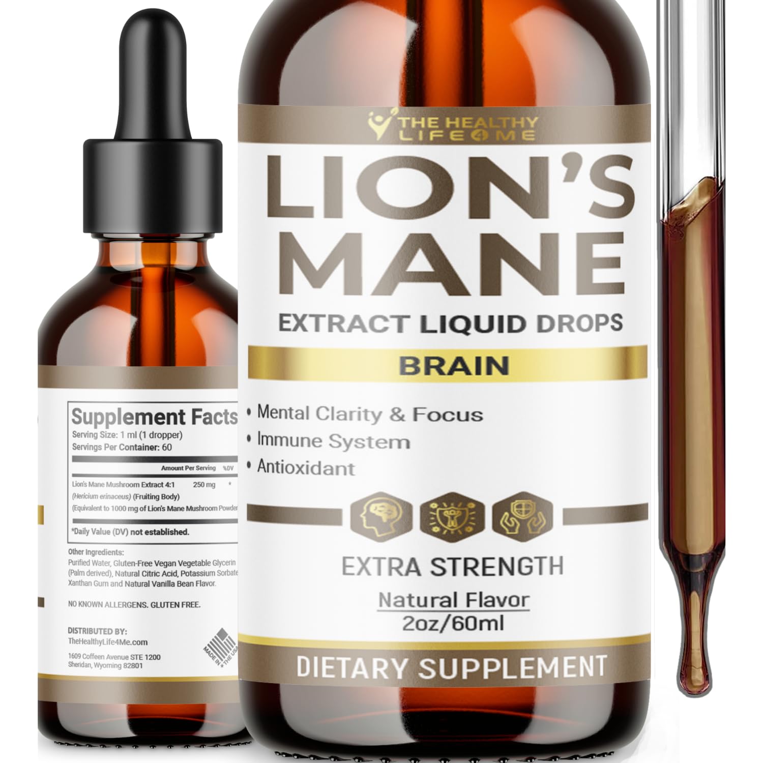 THE HEALTHY LIFE 4 ME Liquid Lions Mane Supplement | Daily Mushroom Supplement for Memory Focus & Clarity | Brain Booster | Lions Mane Tincture for Immune Support | 2 Fl oz
