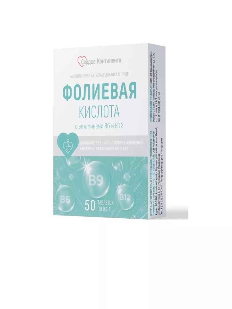 | Trade name | biologically active food supplement "Folic acid with vitamins B6 and B12" (100 mg tablets) |