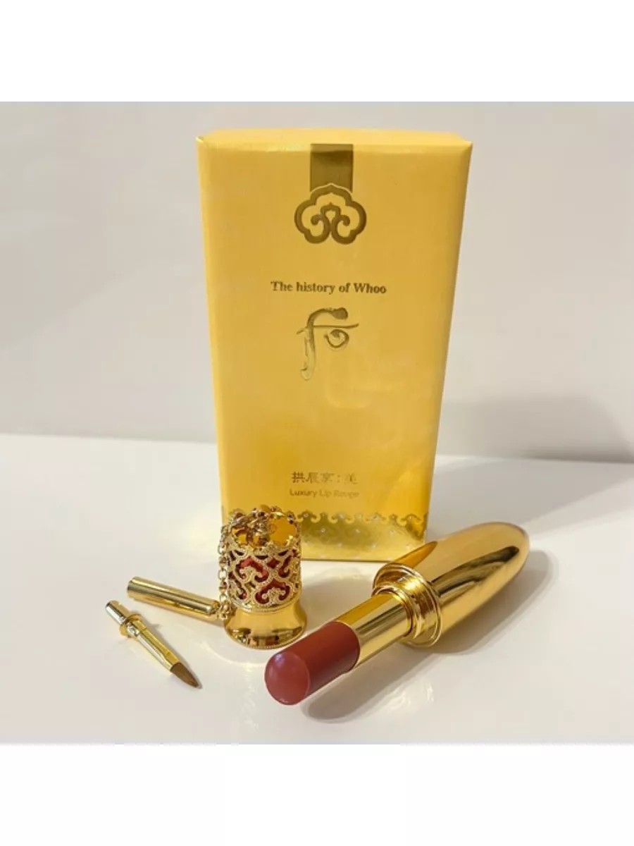 The History of Whoo Роскошная, уникальная губная помада оттенок Brick Rose No88 (6гр) Gongjinhyang Mi Luxury Lip Rounde - люксовая губная помада - это переосмысление красоты, воплощающая современное представление о королевской красоте. Губная помада, которая мгновенно и мягко ложится на губы, придавая им интенсивный, яркий цвет и обеспечивая ультравлажное увлажнение всего одним движением, тем самым помогает улучшить внешний вид, делая губы яркими и гладкими. Носибельный классический насыщенный цвет дополняет элегантный макияж. Функциональная корейская косметика люкс класса в составе содержит коллаген и аминокислоты и обладает омолаживающим действием для разглаживания морщин. Помада для губ увлажняет, питает кожу губ, замедляет процессы старения. Роскошная помада эластично ложится на губы, создает яркий насыщенный цвет с влажным и равномерным покрытием. Губная помада визуально увеличивает объем губ и не подчёркивает «морщины-марионетки» Финиш: яркое влажное равномерное покрытие губ, не растекается и не скатывается. На губах приятное ощущение не сушит тонкую кожу губ, не оставляет липкости или жирного блеска. Декоративная косметика люкс класса не имеет ярко-выраженного аромата и вкуса, и не конфликтует с другими косметическими средствами. Изысканный дизайн футляра в виде «пули» выполнен из прочного материала, который не подвержен царапинам, не тускнеет и не облазит со временем. Функциональная кисть для нанесения помады, имеет индивидуальный футляр, который крепится на магните на колпачке помады, тем самым не пачкает после использования сумочку или косметичку. Подложка из черного бархата, добавляет лоска подарочной упаковке.