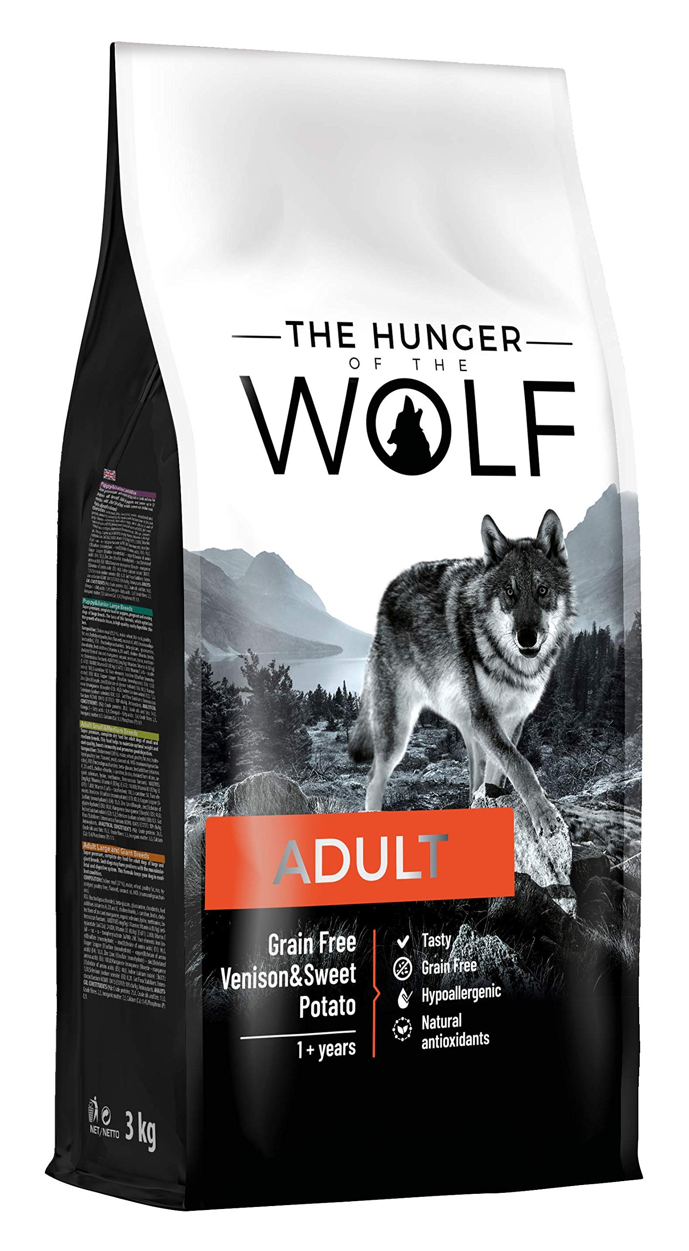 Working with experienced veterinarians, nutrition specialists and breeders and drawing on many years of experience and cutting-edge research, The Hunger of the Wolf offers the highest quality dog food to nourish and care for your four-legged friend. This product is rich in game and pork meat and sweet potatoes, and is suitable for adult dogs of all breeds. It is composed of carefully selected, very high quality ingredients, specially chosen to preserve the good health and shape of your dog. To create this product, we were inspired by wolves, ancestors of modern dogs and large carnivores. It is precisely for this reason that the main ingredient in all our products is meat. INGREDIENTS Game meat meal (15 ), sweet potato (15 ), dehydrated pork (15 ), potato (15 ), pea, poultry fat, hydrolyzed animal protein, beet pulp, apple, flaxseed, prebiotics, green tea extract, rosemary extract, beta-glucans, vitamins and additives. ANALYTICAL CONSTITUENTS: crude protein - 27 , crude fiber - 3 , crude fat - 15 , crude ash - 9.1 , calcium - 1.2 , phosphorus - 0.8 , sodium - 0.3 . DIRECTIONS FOR USE The first time, the food should be introduced gradually over 4 to 6 days. The total amount of food should be divided over two meals, please always make fresh water available to your dog. Food quantities are given as a guide and may vary depending on the dog's body weight, age, breed, activity and exercise. A delicious taste your dog will love inspired by wolves, large carnivores and ancestors of modern dogs. Enriched with plant extracts with powerful antioxidant properties to slow down cellular deterioration and aging. Product does not contain gluten, soy, or added chemical colors without any artificial preservatives. Quality composition: 180g of dried salmon in 1kg of this product is the equivalent of approximately 720g of fresh meat. Hypoallergenic and grain-free formula, game and sweet potato flavor suitable for dogs of all breeds with digestive problems, food allergies, or skin conditions. Collaborant avec des vétérinaires, spécialistes en nutrition et éleveurs chevronnés et se basant sur de nombreuses années d'expérience et des recherches de pointe, The Hunger of the Wolf propose des aliments pour chiens de très haute qualité, afin de nourrir et prendre soin de votre ami à quatre pattes. Ce produit est riche en viande de gibier et de porc et en patates douces, et convient aux chiens adultes de toutes races. Il est composé d'ingrédients de très haute qualité soigneusement sélectionnés, spécialement choisis afin de préserver la bonne santé et la forme de votre chien. Afin de créer ce produit, nous nous sommes inspirés des loups, ancêtres des chiens modernes et grands carnivores. C'est précisément pour cette raison que l'ingrédient principal de tous nos produits est la viande. INGRÉDIENTS Farine de viande de gibier (15 ), patate douce (15 ), porc déshydraté (15 ), pomme de terre (15 ), pois, graisse de volaille, protéines animales hydrolysées, pulpe de betterave, pomme, graines de lin, prébiotiques, extrait de thé vert, extrait de romarin, bêta-glucanes, vitamines et additifs. CONSTITUANTS ANALYTIQUES : protéines brutes - 27 , fibres brutes - 3 , matières grasses brutes - 15 , cendres brutes - 9,1 , calcium - 1,2 , phosphore - 0,8 , sodium - 0,3 . MODE D'EMPLOI La première fois, il faut introduire la nourriture progressivement sur 4 à 6 jours. La quantité totale d'aliments doit être répartie sur deux repas, veuillez toujours mettre de l'eau fraîche à la disposition de votre chien. Les quantités d'aliments sont données à titre indicatif et peuvent varier en fonction du poids corporel, de l'âge, de la race, de l'activité et de l'exercice du chien. Un goût délicieux que votre chien adorera produit inspiré par les loups, grands carnivores et ancêtres des chiens modernes. Enrichies en extraits de plantes aux puissantes propriétés antioxydantes, afin de ralentir la détérioration et le vieillissement cellulaires. Produit ne contenant pas de gluten, soja, ni colorants chimiques ajoutés sans aucun conservateur artificiel. Composition de qualité : 180 g de saumon séché contenus dans 1 kg de ce produit représentent l'équivalent d'environ 720 g de viande fraîche. Formule hypoallergénique et sans céréales, saveur gibier et patates douces convient aux chiens de toutes races souffrant de problèmes de digestion, d'allergies alimentaires ou de problèmes de peau.