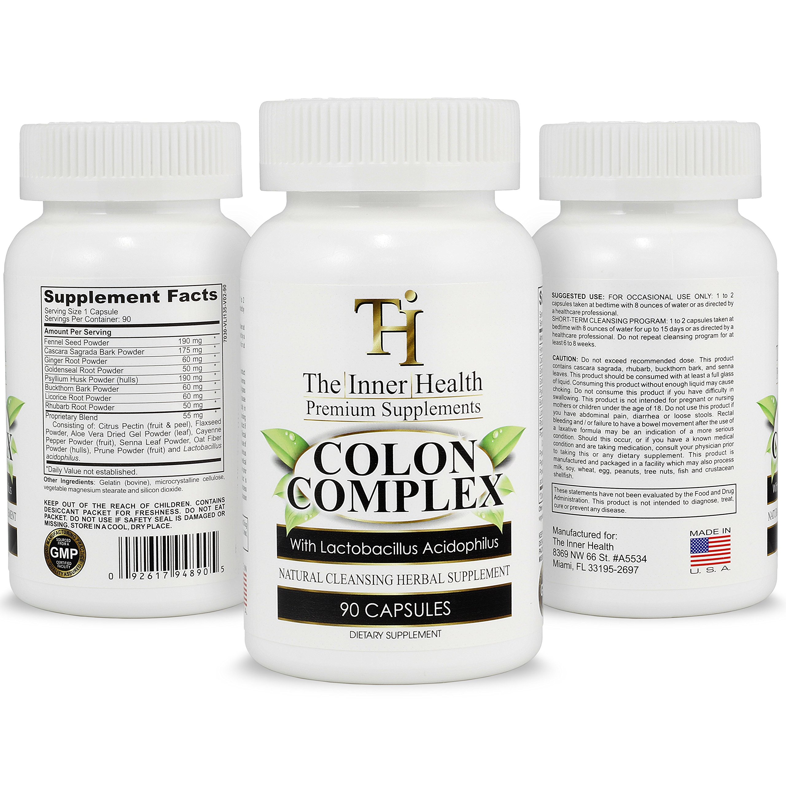 The Inner Health Colon Gut Cleanse Detox Formula offers a comprehensive approach to maintaining colon health. This blend is crafted with a mix of fiber, herbs, probiotics, and enzymes, aimed at supporting regular bowel movements and reducing bloating. It includes natural fibers such as psyllium husk and fennel seed, along with herbal ingredients like senna leaf and cascara sagrada, which are traditionally used for their gentle laxative properties. Additionally, the formula is enriched with licorice root, ginger root, milk thistle, goldenseal, and yellow dock, which are known for their soothing effects on the digestive system and for aiding in digestion and detoxification. This product also contains prebiotics to nourish beneficial gut bacteria and digestive enzymes to assist in metabolic processes. It is designed to complement a healthy diet and exercise regimen and may be beneficial in a weight management program.✓ Gentle for Everyday Use: Each capsule is crafted to be gentle on your system, making it an ideal, easy-to-incorporate supplement in your daily health routine, supporting overall digestive health without harsh effects. ✓ Designed for Daily Wellness: With a supply of 90 capsules, this supplement is suitable for everyone – men, women, fitness enthusiasts, and anyone committed to a healthy, active lifestyle. ✓ Your Satisfaction, Our Promise: We are confident in our product and back it with a no-questions-asked money-back guarantee. Don't miss out order now while supplies last. ✓ Confidence in Quality: Proudly made in the USA, our supplement stands out with its commitment to the highest quality standards. It's free from artificial ingredients, ensuring your peace of mind. ✓ Focused on Digestive Harmony: Our formula is dedicated to supporting your digestive and colon health. If you don't feel the difference, we offer a money-back guarantee. ✓ Discover the Power of Nature: This potent herbal supplement is packed with natural ingredients like Fennel Seed, Cascara Sagrada, Ginger Root, Goldenseal Root, Psyllium Husk, Buckthorn Bark, Licorice Root, Rhubarb Root, Citrus Pectin, Flaxseed Powder, L. Acidophilus, Aloe Vera, Cayenne Pepper, Senna, Oat Bran, and Prune Juice.