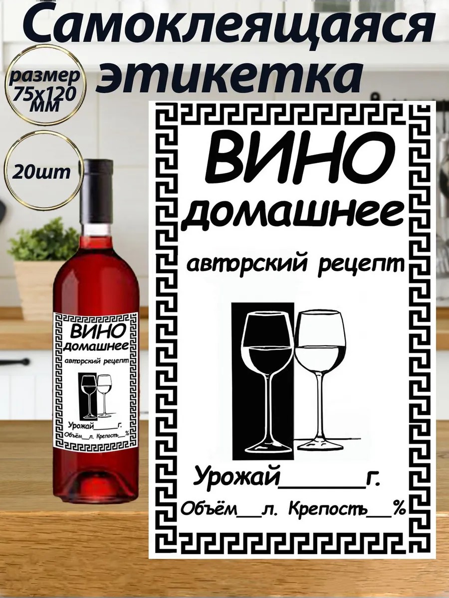 Этикетка самоклеящаяся на бутылку Вино 75х120 мм 20 шт