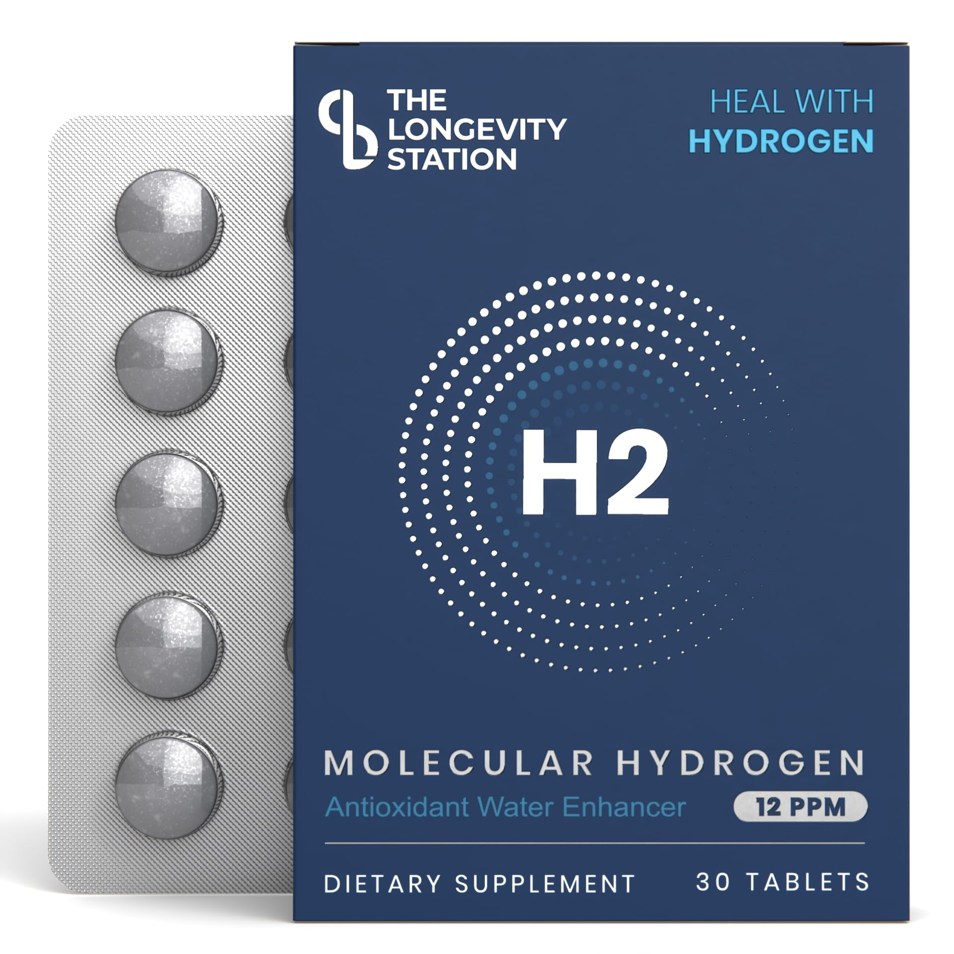 The Longevity Station Molecular Hydrogen H Tablets 12 PPM | Neutralize The Effects of Oxidative Stress & Free Radicals | Supports Cellular Health | Bioavailable Source of Magnesium | 30 Tablets