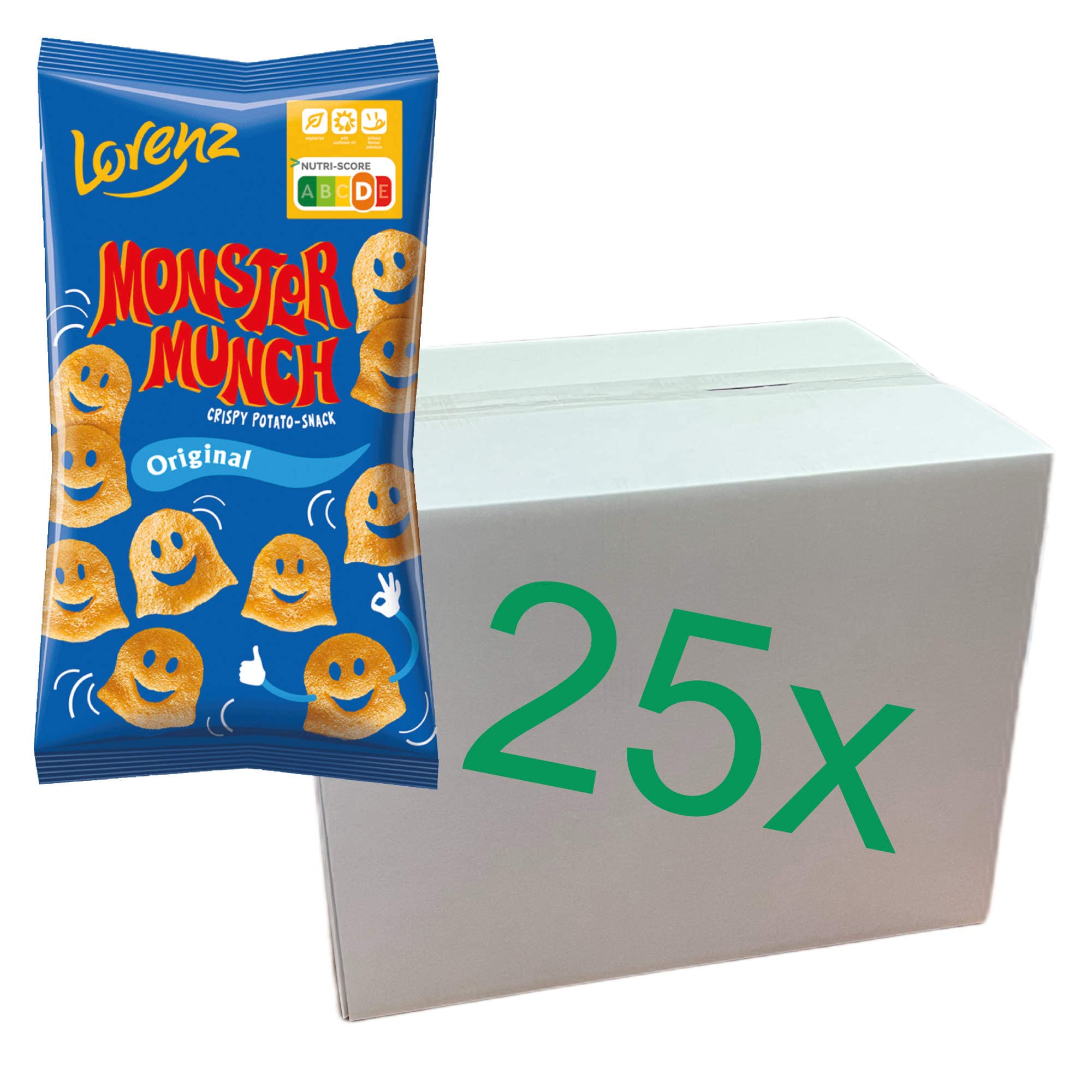 DESCRIPTION DU PRODUIT Lorenz Monster Munch Original Sachet de 25 x 75 g (chips de pommes de terre en forme de monstre).