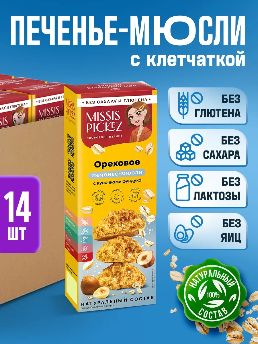 Печенье-мюсли Ореховое с кусочками фундука "Missis Pickez", вкусная сладость для любителей здорового питания.