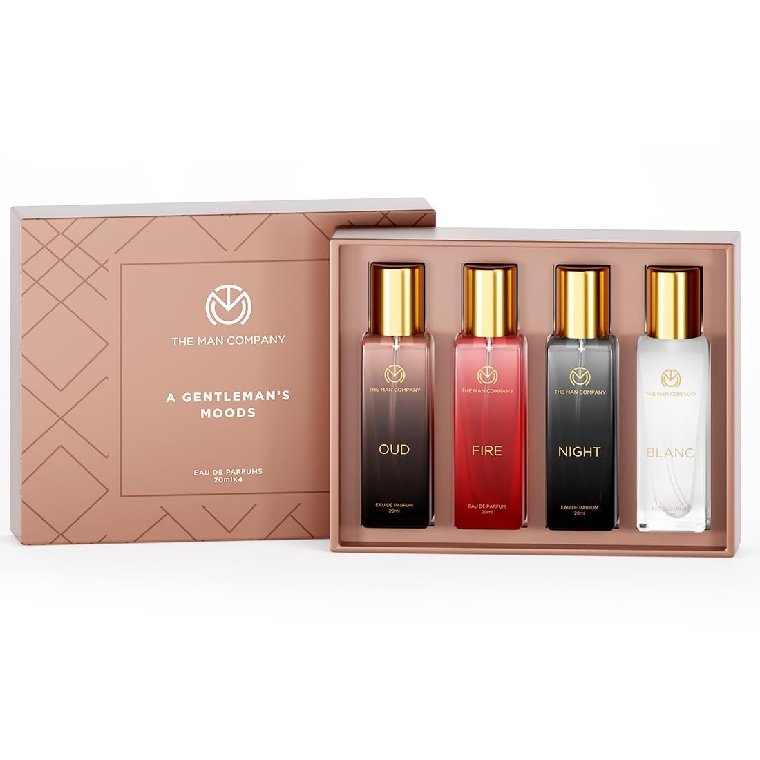 The-Man-Company Specially Curated Perfume Spray Gift Set For Men - 4X20Ml (2.70 oz),A Gentleman's Moods,Premium Long-Lasting,Luxury Eau De Parfum,Night For Date,Blanc For Office,Fire For Party,Oud For Outing.