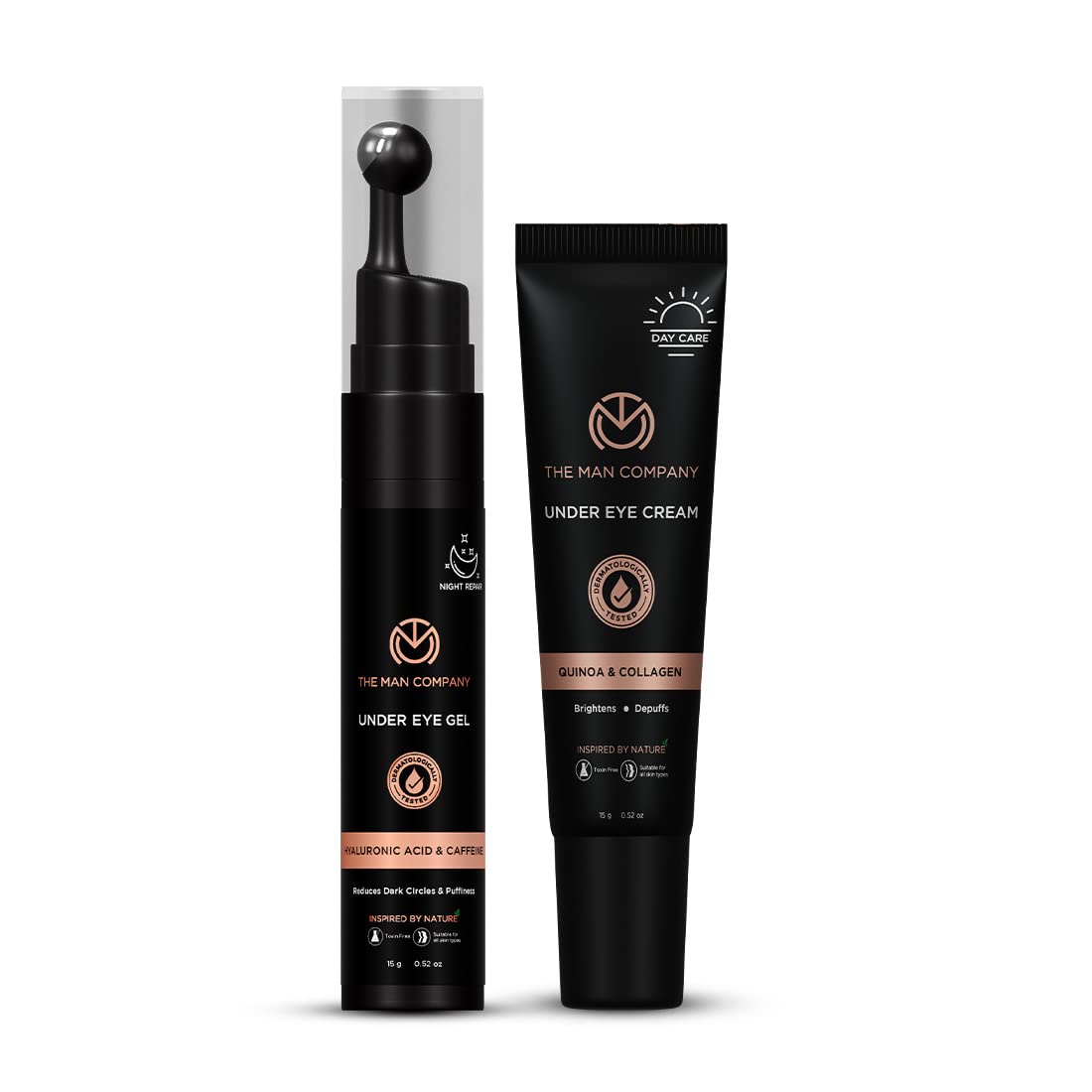 The Man Company Wear Care Combination |Under-eyes cream-15 g & under-eyes gel-15 g with cooling massage roller |Brightly on |Depuffs |Dermatologically tested |Poison -free |All skin types