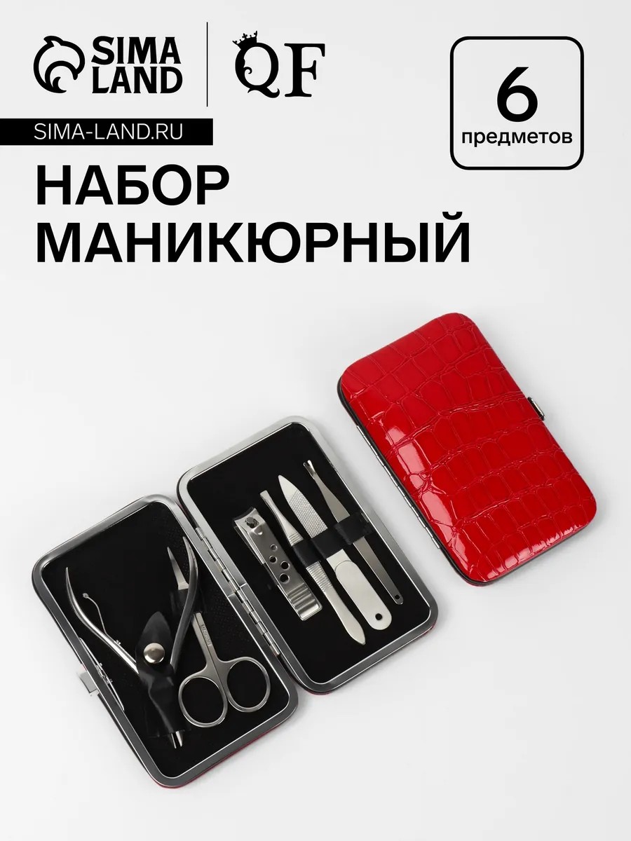 Набор маникюрный «Рептилия», 6 предметов, в футляре, красный