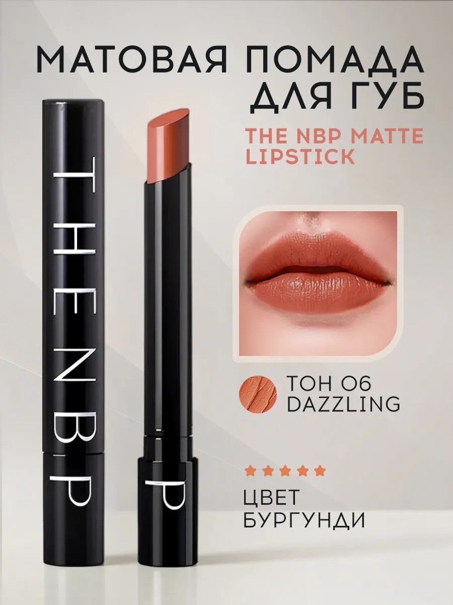 | Полное наименование товара | Матовая помада для губ THE NBP Matte Lipstick (тон 06 Dazzling) |