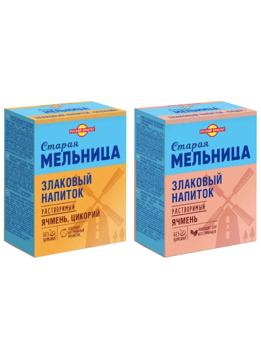Злаковый напиток "СТАРАЯ МЕЛЬНИЦА" содержит цикорий и ячмень. Напиток имеет приятный вкус и аромат. Полезная альтернатива кофе, не содержит кофеина. Очень вкусно с молоком и сахаром!