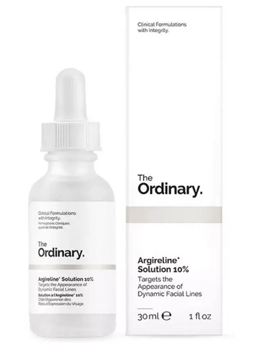 The Ordinary Argireline Solution 10%, антивозрастная, от морщин, 30 ml. Argireline расслабляет лицевые мышцы, что способствует устранению мимических морщин, особенно в зоне вокруг глаз и на лбу. Пептид аргирелин расслабляет мышцы и препятствует образованию мимических морщин. Работает это так: белок проникает в базальный слой эпидермиса и прерывает нейромышечную передачу. В результате мимические морщины становятся менее выраженными.Способ применения: после тщательного очищения нанести несколько капель сыворотки на лоб и вокруг глаз. Перед кремами/маслами. Консистенция сыворотки водянистая. Для достижения заметного эффекта рекомендуется использовать косметику длительное время утром и вечером.Состав сыворотки против морщин The Ordinary Argireline Solution 10%Вода, Пропандиол, Ацетилгексапептид-8, Дисукцинат Тринатрия Этилендиамина, Камедь По Длине И Ширине, Хлорид Натрия, Изоцетет-20, Диметилизосорбид, Сорбат Калия, Феноксиэтанол, Хлорфенезин.