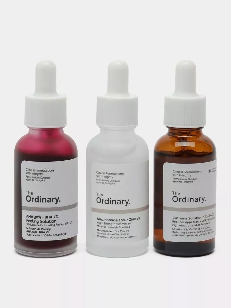 Идеальный уход за вашей кожей The Ordinary 3 шт по 30мл . Кожа после применения становится ухоженной и свежей. 1. Пилинг обновляет ваши клетки кожи, придает свежесть и сияние, эффективно очищает ваши забитые поры, идеально в борьбе проявления пигментации, акне и черных точек. 2. Сыворотка для кожи вокруг глаз устраняет темные круги и отеки под глазами, замедляет процесс старения . 3 Сыворотка для лица предназначена для устранения нежелательных высыпаний и снижает выделения кожного себума, уменьшает уровень жирности кожи, устраняет прыщи, постакне, черные точки и пигментацию , помогает скрывать шрамы и несовершенства на вашем лице , обеспечивает антивозрастной эффект.