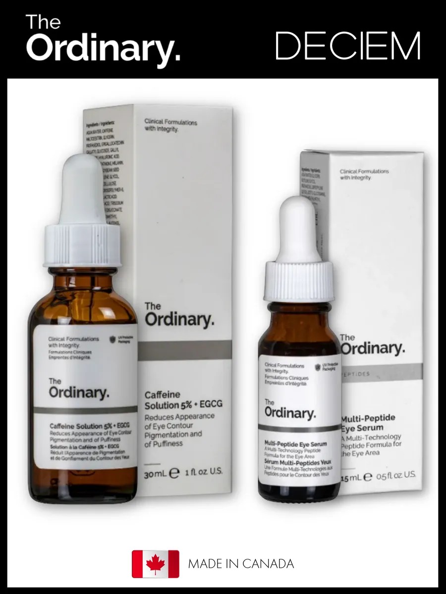 • Caffeine Solution 5% + EGCG – концентрированный кофеин в сочетании с экстрактом зелёного чая уменьшает отёки, снимает припухлость и осветляет темные круги. Он также обладает антиоксидантными свойствами и защищает кожу от вредного воздействия окружающей среды.