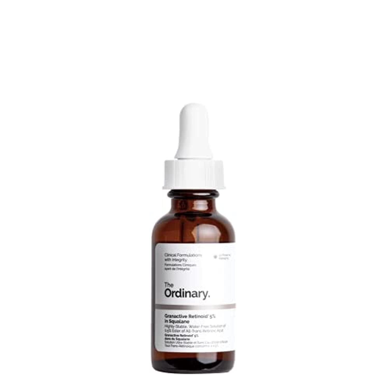 This high-strength, low-irritation serum has been proven to soften fine lines, improve pigmentation issues, and revitalize skin. A water-free solution, it features a 5 concentration of the advanced active retinoid Granactive Retinoid, which has been shown to defy aging without any of the irritation commonly caused by retinol use. This is The Ordinary's most potent formulation. SAFETY WARNING Keep out of reach of children.