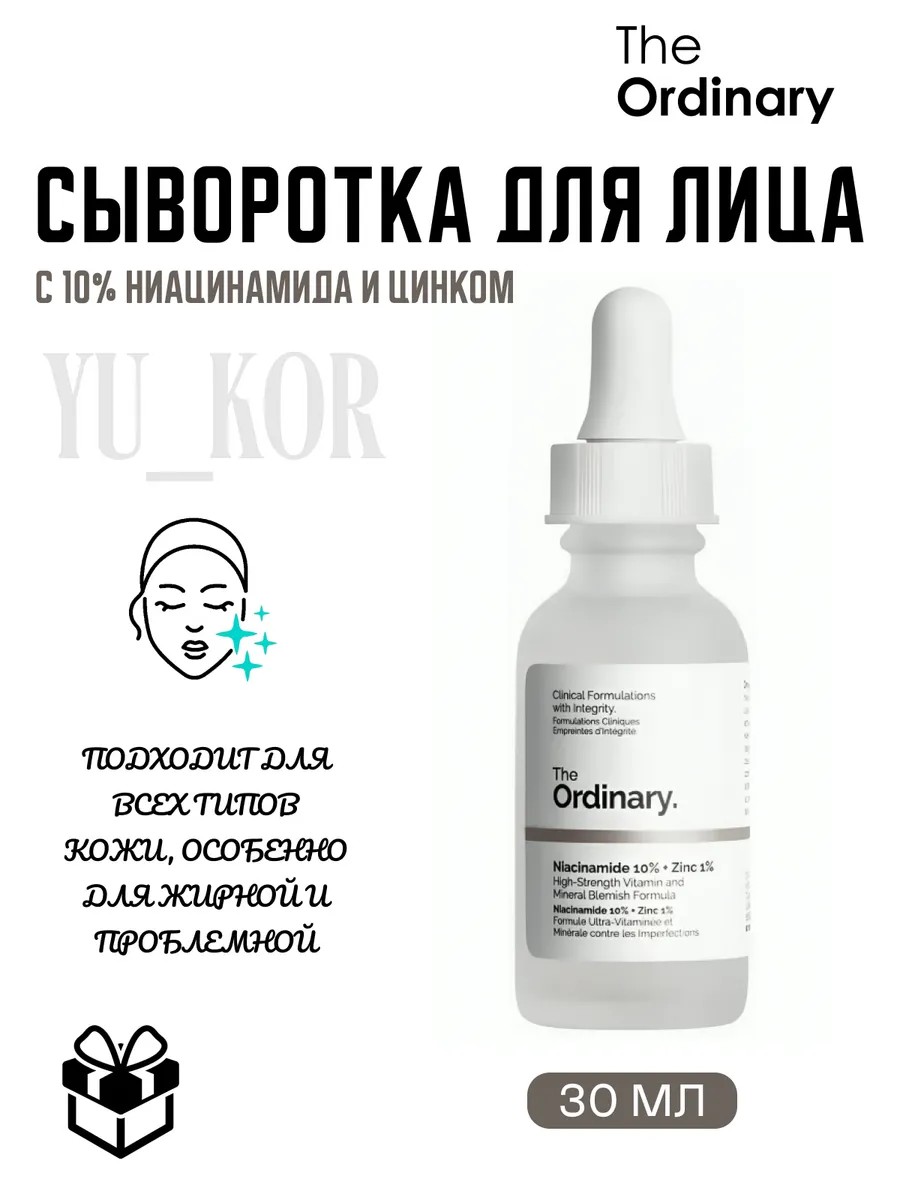 Сыворотка с ниацинамидом и цинком The Ordinary Niacinamide 10% + Zinc 1% предназначена для ухода за проблемной кожей, для активной борьбы с акне, жирным блеском, угревой сыпью. Средство обладает себорегулирующим и противовоспалительным действиями, благодаря чему уменьшает количество высыпаний, делая кожу более чистой, а также мягко матирует. Ниацинамид, чья эффективность в осветлении доказана множеством исследований, отвечает за выравнивание тона кожи, устранение пигментации, пятен пост-акне. Сыворотка стимулирует синтез собственных волокон коллагена и эластина, повышая упругость и эластичность кожи, уменьшает поры, придает коже здоровое сияние