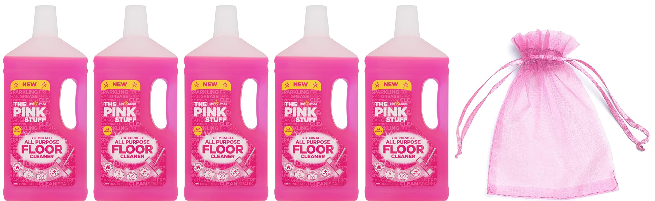 The Pink Stuff The Miracle All Purpose Floor Cleaner 5Pk x 1L + Our Gift for You: Organza Bag Size: 9 x 7 x 0.1cm