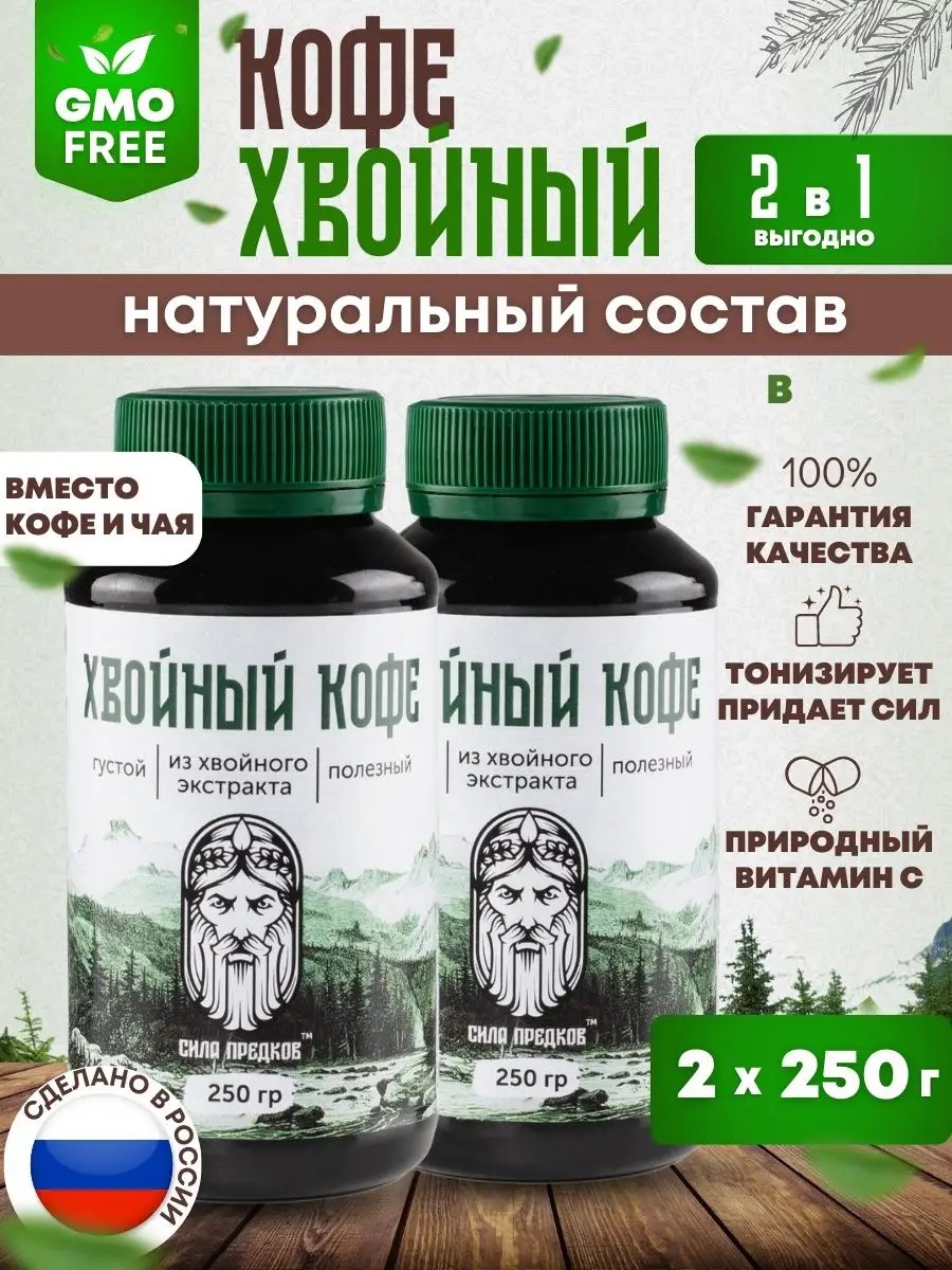 Sugar-free pine extract coffee is a true balm that captures the power of nature. This invigorating drink fills you with energy, so it's often compared to a coffee drink. It contains a complex of vitamins and microelements. It helps lower cholesterol and acts as an antiparasitic agent.