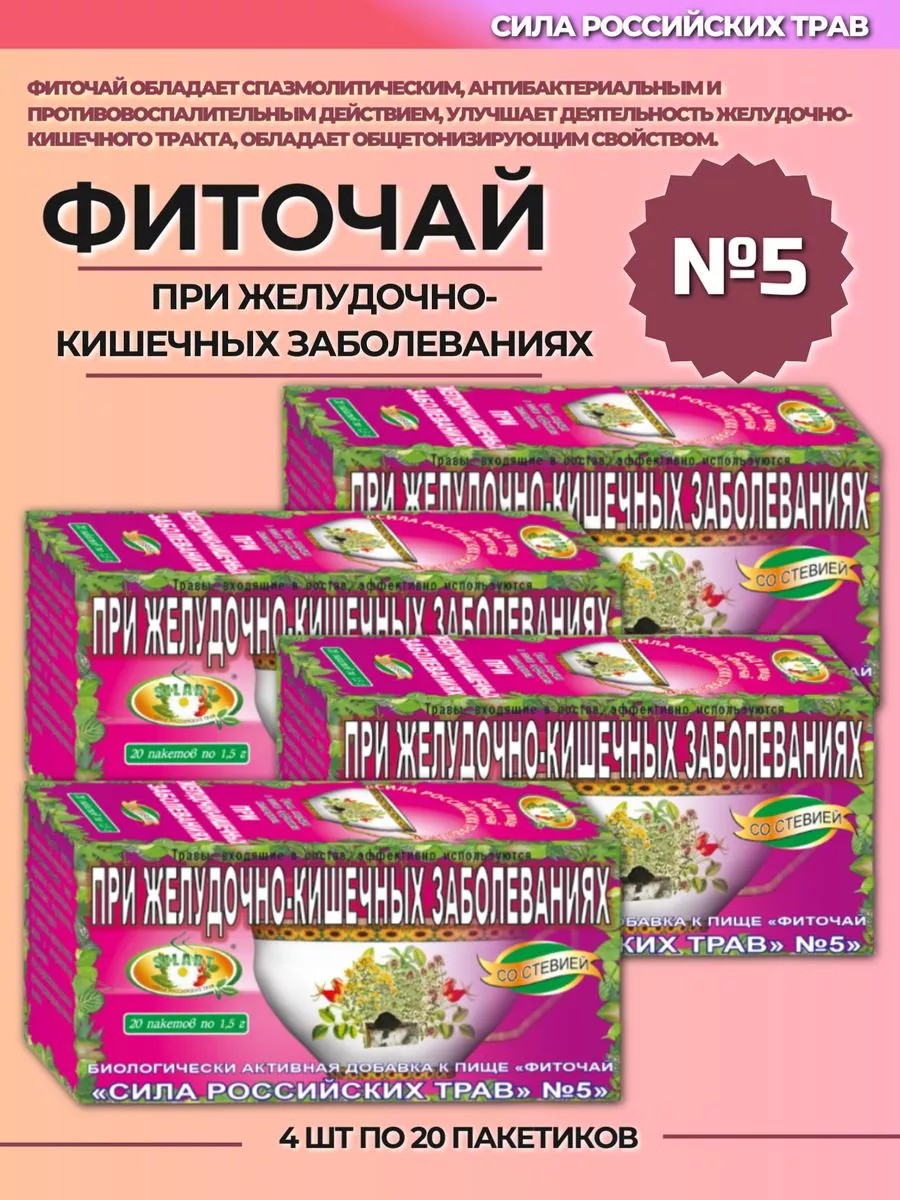Сила российских трав Фиточай 5 при желудочно-кишечных заболеваниях 4 шт