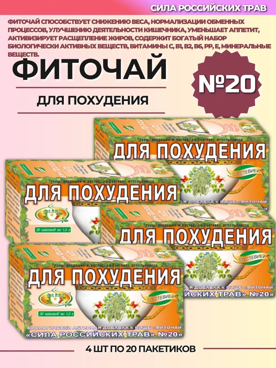 Сила российских трав Фиточай 20 для похудения 4 шт