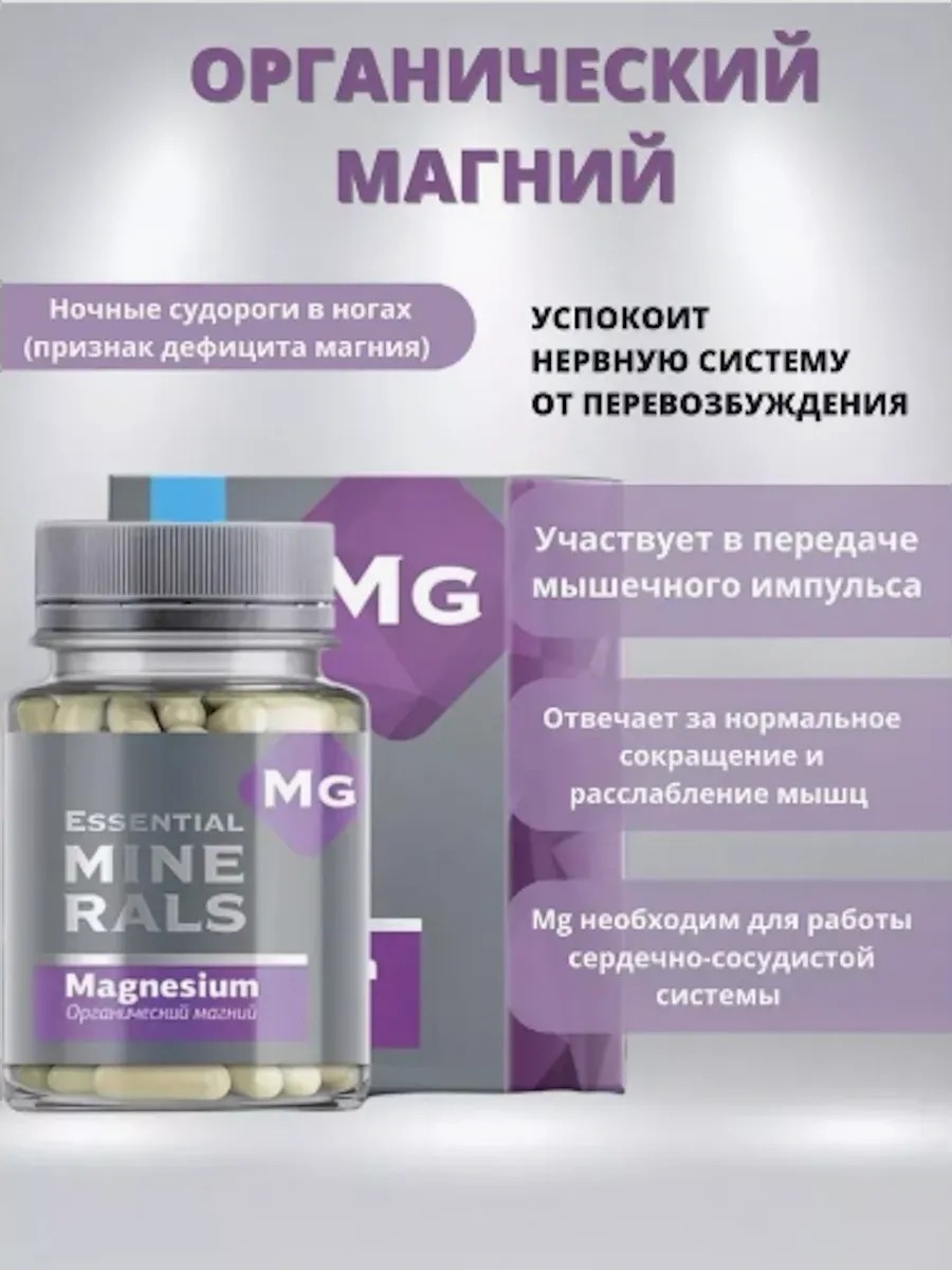 | Комплектация | Органический магний 60 капсул |