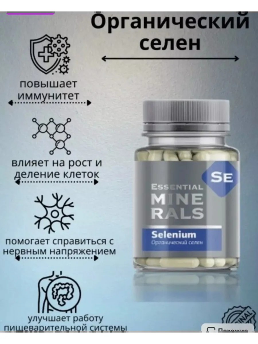| Комплектация | Количество в упаковке: 60 капсул; Органический селен - Essential Minerals |