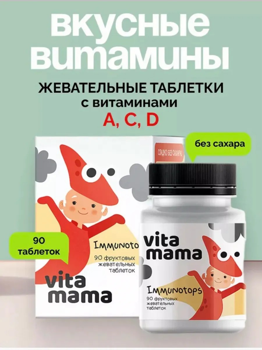 | Комплектация | Фруктовые жевательные таблетки с витаминами A, C и D |
