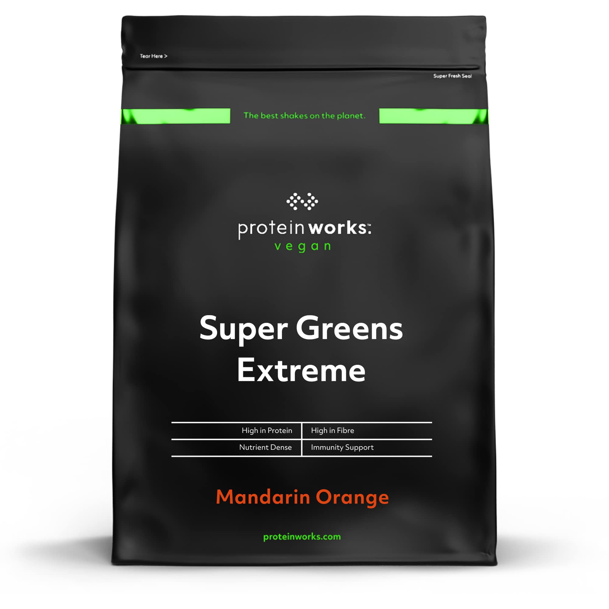 What is Super Greens Extreme? Super Greens Extreme from THE PROTEIN WORKS is an innovative, 100 plant-based greens powder designed to help you be healthier. To make Super Greens Extreme, we have carefully selected over 20 different superfoods, rich in antioxidant power and popular in the world of herbal medicine and care. This includes powerhouse products such as Spirulina, Spinach and Broccoli Powder, blended with Ashwaghanda Root Extract and Black Pepper Extract to keep you in shape! This green powder is designed to boost energy, immunity and improve concentration. Super Greens Extreme is available in 3 delicious flavors: Tropical Punch, Apple Lemon, Red Fruit Explosion INGREDIENTS Super Greens Blend [Spirulina Extract, Spinach Powder, Wheatgrass Powder, Barley Grass, Broccoli Powder, Chlorella Powder, Matcha Green Tea Extract, Ashwagandha Extract, Green Tea Extract, Green Coffee Extract, Montmorency Cherry Extract, Panax Ginseng, Siberian Ginseng, Grape Seed Extract, Garcinia Cambogia, Yerba Mate, Black Pepper Extract], Inulin, Blend of Vitamins and Minerals (Potassium Citrate, Sodium Chloride, Potassium Dihydrogen Phosphate, Magnesium Oxide, Vitamin C, Zinc Gluconate, Ferric Pyrophosphate, Vitamin E Acetate, Potassium Iodide, Vitamin B3, Sodium Selenite, Vitamin A Acetate, Vitamin B5, Copper Gluconate, Manganese Sulfate Monohydrate, D-Biotin, Vitamin B12, Vitamin D2, Vitamin B6, Vitamin B1, Vitamin B2, Folic Acid, Vitamin K), Citric Acid, Flavor, Sweetener (Sucralose). Contains naturally occurring sulphites. DIRECTIONS FOR USE Add 12g (4 black measuring spoons of 5 ml) to 250-300 ml of water or juice. Then mix well and consume. Boost immunity - contains 100 of the recommended intake of vitamin C. High in protein, high in fiber, and low in sugar - only 0.3g per serving. Contributes to the intake of 5 fruits and vegetables recommended per day. Qu'est-ce que le Super Greens Extreme ? Super Greens Extreme de THE PROTEIN WORKS est une poudre de verdure innovante, 100 végétale, conçue pour vous aider à être en meilleure santé. Pour la fabrication de Super Greens Extreme, nous avons soigneusement sélectionné plus de 20 superaliments différents, riches en pouvoir antioxydant et populaires dans le monde de la médecine et des soins à base de plantes. Cela comprend des produits puissants tels que la spiruline, les épinards et le brocoli en poudre, mélangés à l'extrait de racine d'Ashwaghanda et à l'extrait de poivre noir pour vous permettre de rester en forme ! Cette poudre verte est conçue pour stimuler l'énergie, l'immunité et améliorer la concentration. Super Greens Extreme est disponible en 3 délicieuses saveurs : Tropical Punch, Pomme citron, Explosion de fruits rouges INGRÉDIENTS Mélange Super Greens [Extrait de Spiruline, Poudre d'épinards, Poudre d'herbe de blé, Herbe d'orge, Brocoli en poudre, Chlorella en poudre, Extrait de Thé Vert Matcha, extrait d'ashwagandha, Extrait de Thé Vert, Extrait de Café Vert, Extrait de Cerise de Montmorency, Panax Ginseng, Ginseng Sibérien, extrait de pépins de raisin, Garcinia Cambogia, Yerba Mate, Extrait de Poivre Noir], Inuline, Mélange de Vitamines et Minéraux (Citrate de Potassium, Chlorure de Sodium, Phosphate de Dihydrogène de Potassium, Oxyde de Magnésium, Vitamine C, Gluconate de Zinc, Pyrophosphate Ferrique, Acétate de Vitamine E, Iodure de Potassium, Vitamine B3, Sélénite de Sodium, Acétate de Vitamine A, Vitamine B5, Gluconate de Cuivre, Monohydrate de Sulfate de Manganèse, D-Biotine, Vitamine B12, Vitamine D2, Vitamine B6, Vitamine B1, Vitamine B2, Acide Folique, Vitamine K), Acide Citrique, Arôme, Edulcorant (Sucralose). Contient des sulfites presents naturellements. MODE D'EMPLOI Ajoutez 12g (4 cuillères doseuses noires de 5 ml) à 250-300 ml d'eau ou de jus. Ensuite, mélangez bien et consommez. Renforcer l'immunité - contient 100 de l'apport recommandé en vitamine C. Riche en protéines, riche en fibres et pauvre en sucre - seulement 0,3 g par portion. Contribue à l'apport des 5 fruits et légumes recommandés par jour.