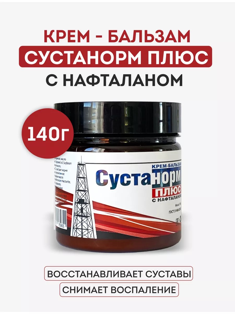 Крем-бальзам для тела "Сустанорм" "Сустанорм плюс с нафталаном" "Сустанорм форте" предназначен для ухода за суставами и улучшения функционального состояния опорно-двигательного аппарата. Натуральные ингредиенты, входящие в состав крема, улучшают подвижность и гибкость сустава, обменные процессы. Повышают упругость и эластичность кожи, снимают усталость. Глюкозамин -улучшает подвижность и гибкость суставов в течении дня, повышает способность хрящевой ткани к самовосстановлению. Экстракт сабельника -оказывает положительное влияние на подвижность суставов и позвоночника, улучшает кровоснабжение. Бишофит -быстро снимает болевой синдром, снимает воспалительный процесс расширяет сосуды. Экстракт имбиря-оказывает согревающее действие, улучшает обмен веществ. Рекомендации к применению: при радикулитах остеохондрозах, артритах, артрозах, ревматизме.