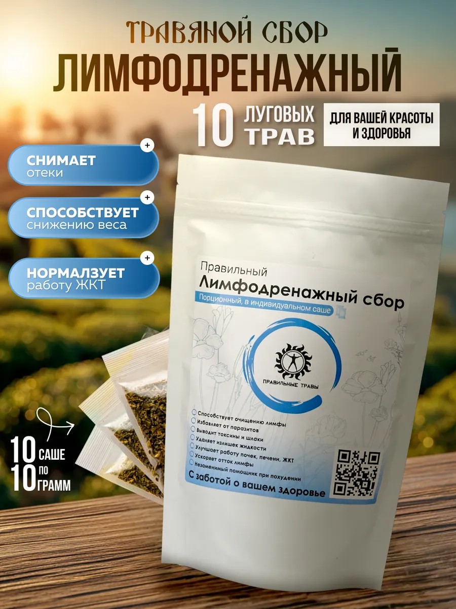 Lymphatic drainage tea for weight loss and cleansing in individual sachets (packets, sachets) of 10 grams - a lymphatic drainage drink for weight loss and body cleansing - is a unique herbal tea designed specifically to cleanse the lymph and improve its flow.