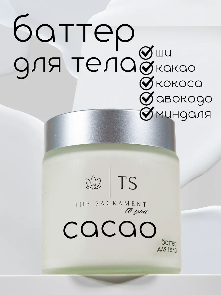 Body butter is a solid body butter. It contains five nourishing oils: solid shea butter, cocoa butter, and coconut oil. Liquid oils include avocado and almond oils. Unrefined oils are used, preserving all the beneficial properties and nourishing components of the oils. This body butter is perfect after hair removal, for retaining moisture after a shower, and for restoring skin after sun exposure. This moisturizing body butter cream made from natural oils is an excellent skin care product. This anti-aging product is suitable for both women and men. Coconut oil has pronounced moisturizing properties, helping to combat dry skin, as well as stretch marks and cracked legs. Cocoa moisturizes and nourishes the skin, giving it a soft, silky appearance.