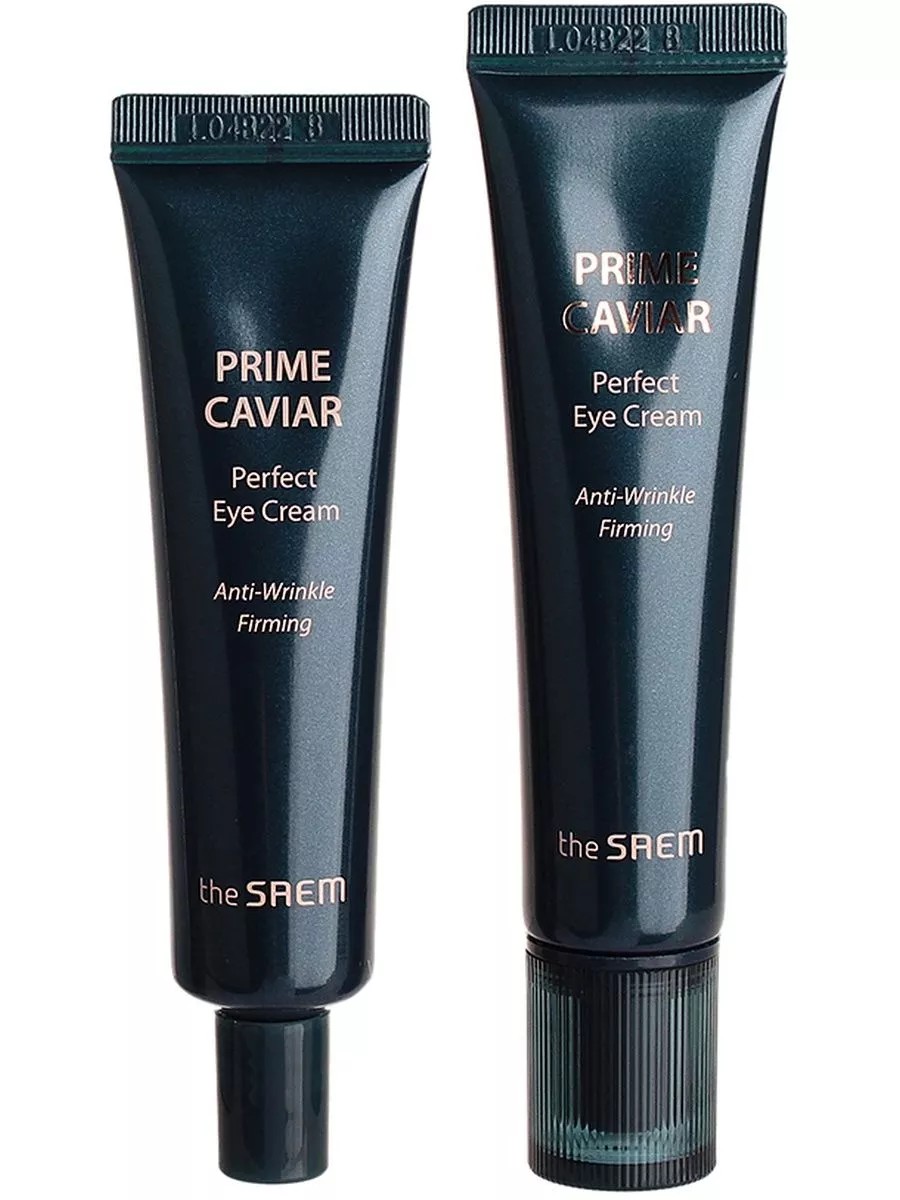 Крем для кожи вокруг глаз, обогащенный экстрактом черной икры, способствует увлажнению кожи, придавая ей упругость и гладкость. Кроме того, крем содержит комплекс из 9 пептидов и экстракт черного морского ушка, которые придают коже жизненную энергию и помогают бороться с морщинами. Его текстура обеспечивает эффективное разглаживание морщин и осветление области вокруг глаз. Применение крема заключается в нанесении его на очищенную кожу вокруг глаз легкими похлопывающими движениями. // The Saem Prime Caviar Perfect Eye Cream Special Set Набор кремов для кожи вокруг глаз с экстрактом черной икры, 35 мл / 31 мл