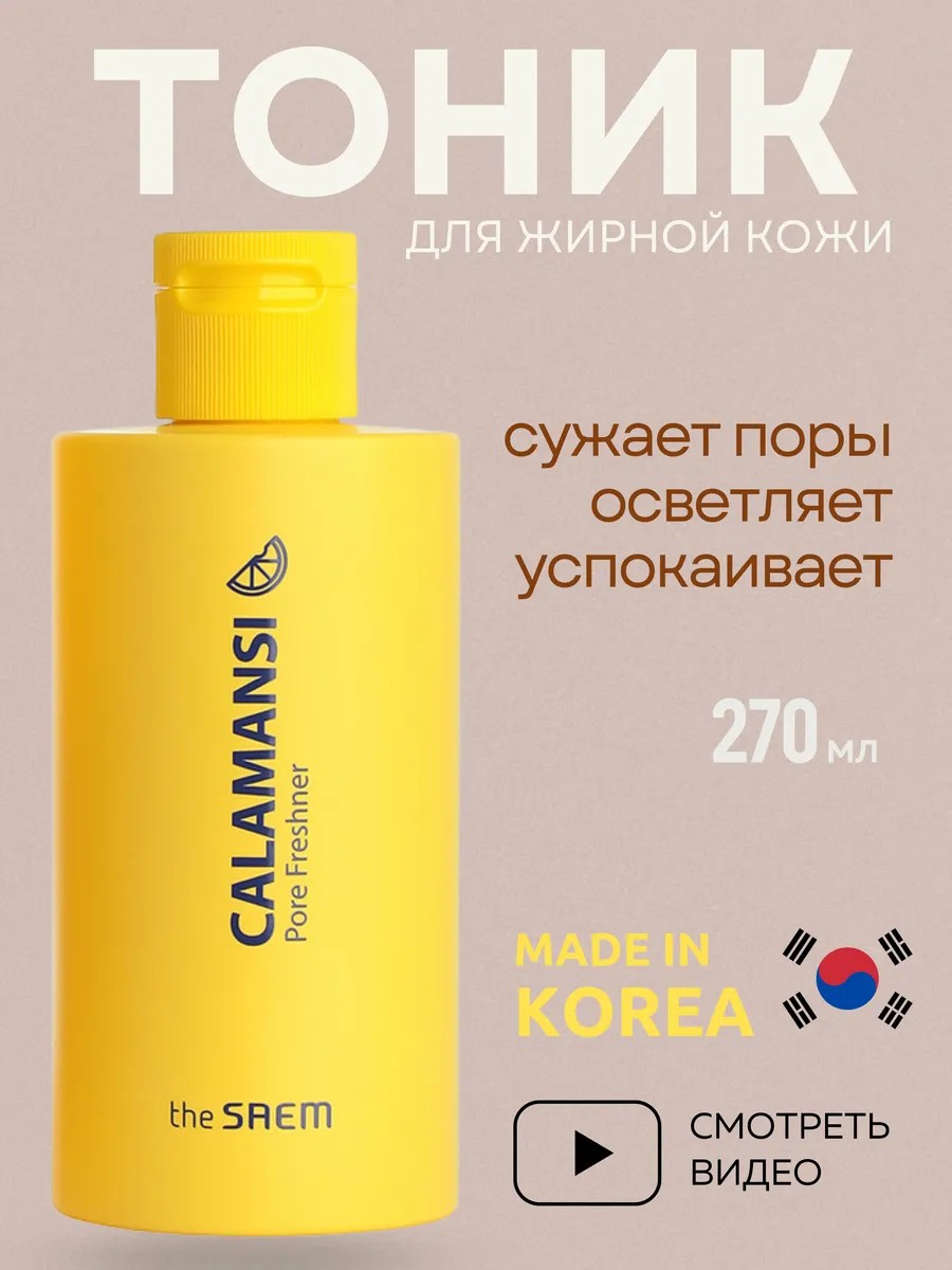 Увлажняющий тонер для чувствительной, жирной, проблемной и комбинированной кожи лица с лимонной кислотой и экстрактом каламанси, который содержит большое количество витамина С, отшелушивает и осветляет пигментацию, оказывает успокаивающее действие, способствует сужению пор и помогает против прыщей и избавиться от черных точек, комедонов и акне. Профессиональный Calamansi Pore Freshner The Saem подходит для мужской, возрастной и подростковой кожи.