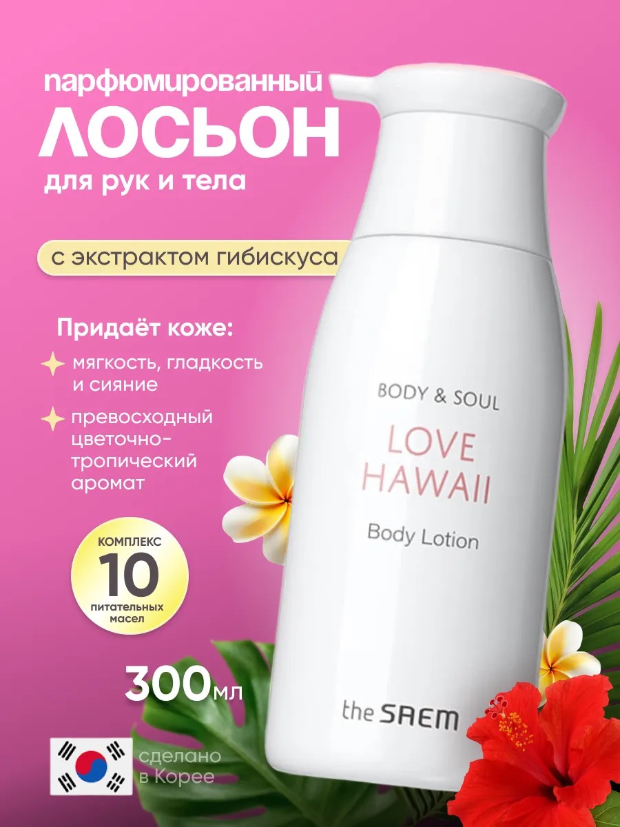 Корейский Лосьон для тела парфюмированный увлажняющий The Saem Body & Soul Love Hawaii Body Lotion 300ml
