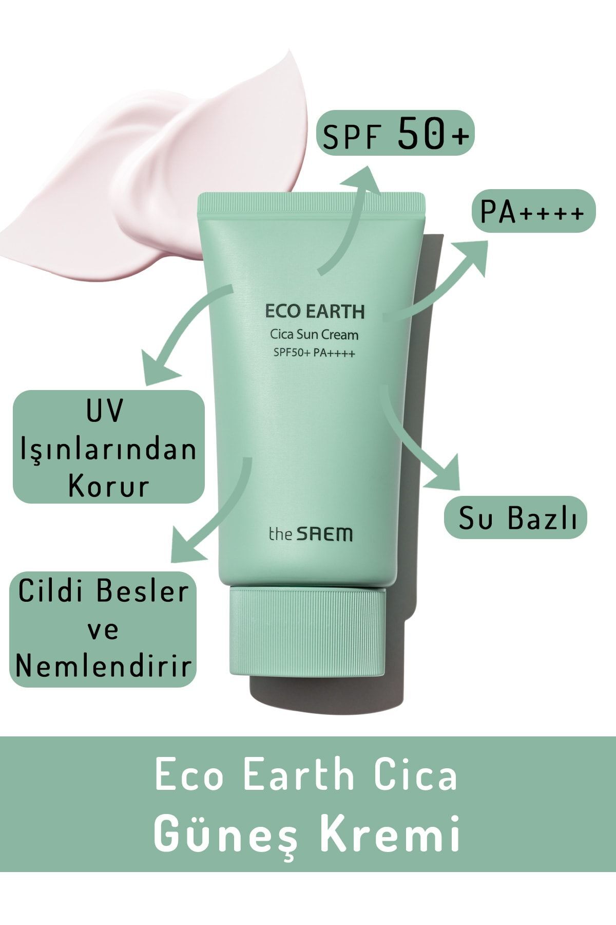 The Saem Cica Essence Calming Effect Sun Cream 50gr - Eco Earth Cica Sun Cream Spf 50+ And Pa++++