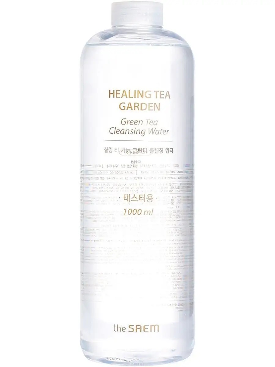 The Saem Healing Tea Garden Green Tea Cleansing Water Moisturizing water with green tea extract, 1000 ml // Cleansing water with green tea extract is an effective product for gentle cleansing and intensive skin hydration. The water contains green tea polyphenols, which have anti-inflammatory and antibacterial properties, promote the penetration of biologically active substances into the skin and supply cells with oxygen, enhance the protective properties of the skin, and reduce swelling. Green tea is a powerful antioxidant and neutralizes the aggressive effects of free radicals. Cleansing water not only removes makeup and daily impurities from the skin, but also intensively moisturizes the skin, leaving it soft and fresh. The water does not contain artificial colors and fragrances, benzophenone, parabens, animal products, mineral oils, or talc. How to use: Shake the bottle before using the water, then moisten a cotton pad with the product and apply it to areas of the face with makeup, then gently wipe off.