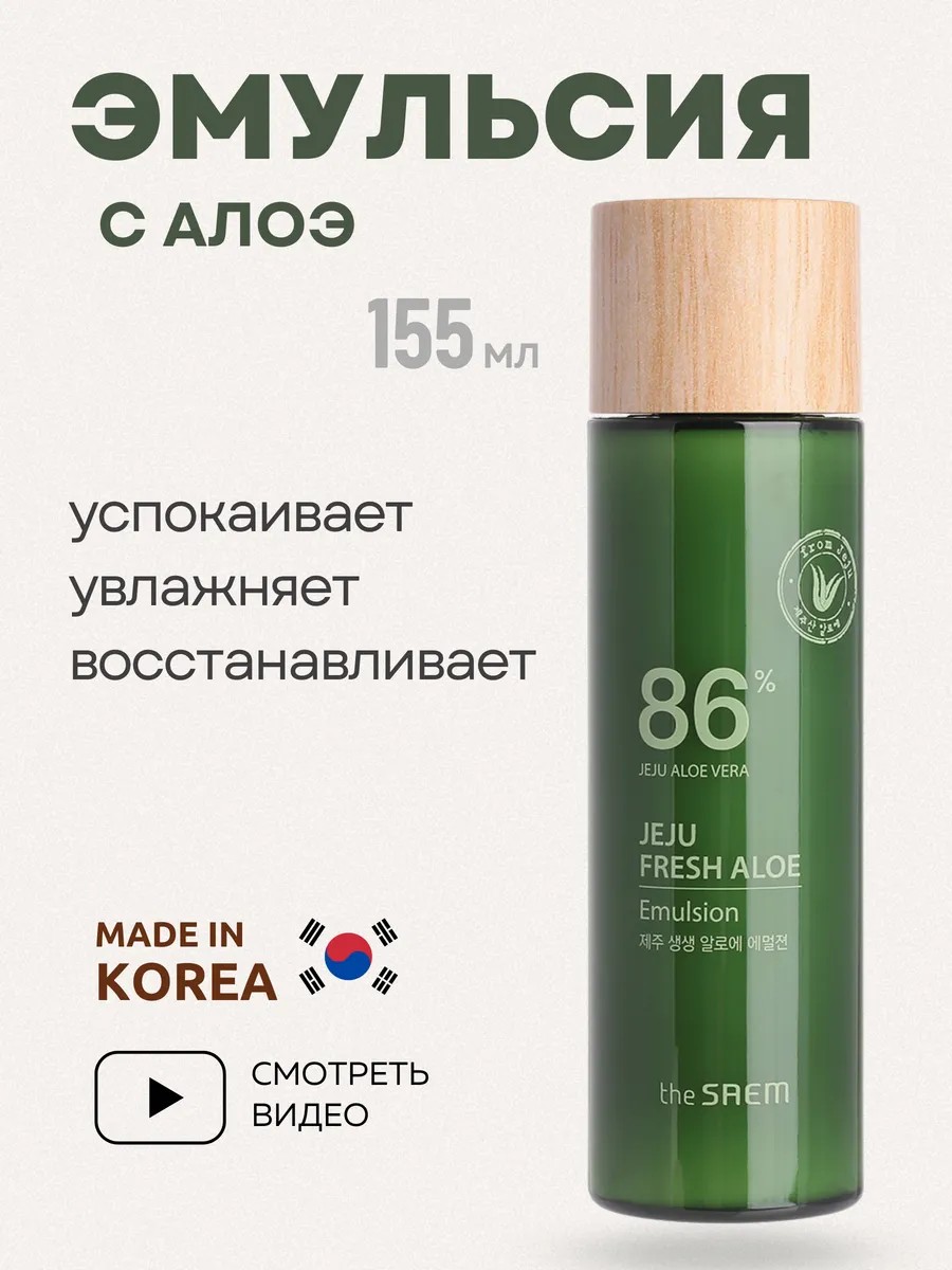 Увлажняющая эмульсия для лица защищает кожу от воздействия окружающей среды. Содержит 86% алоэ, подходит для ухода за любым типом кожи, особенно для сухой, комбинированной и чувствительной. The Saem Jeju Fresh Aloe Emulsion оказывает глубокое питательное действие, способствует заживлению различных раздражений, устраняет сухость и шелушения. Также в составе комплекс растительных экстрактов, действие которых направлено на защиту эпидермиса от внешних негативных влияний. Использовать после тоника-тонера для лица.