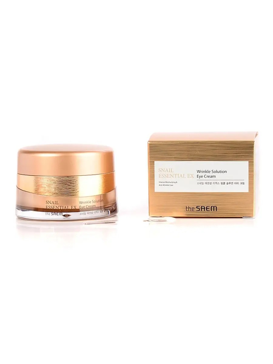 Snail Essential Ex Wrinkle Solution Eye Cream is an effective anti-aging eye cream formulated with snail mucin, peptides, and collagen. Suitable for women 35+ looking to reduce wrinkles, eliminate dark circles, and restore skin elasticity without injections. The formula contains the Golden Snail complex, adenosine, and niacinamide: they moisturize, smooth, and combat pigmentation and dullness. Peptides with a Botox effect gently relieve facial expressions, improving skin texture. Suitable for mature, dry, and sensitive skin. Use morning and evening.