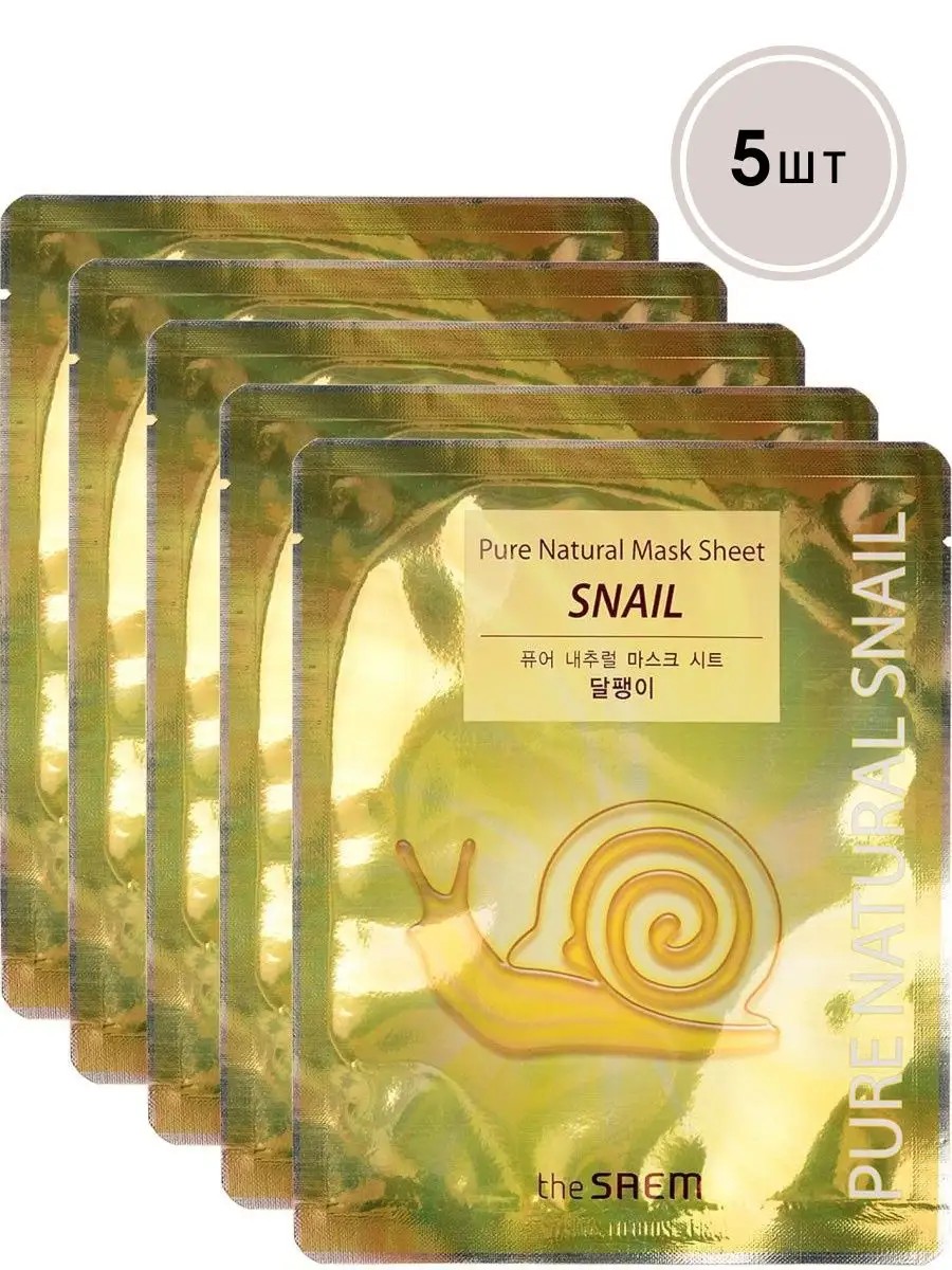 the SAEM Pure Natural Mask Sheet Snail Маска тканевая с муцином улитки // Маска тканевая с муцином улитки обладает великолепным регенирирующим действием, восстанавливает структуру кожи, уменьшает морщинки, увлажняет, питает. Маска с экстрактом улитки содержит полный набор аминокислот, аллантоин, витамины А, С, Е, В6, В12, коллаген, хитозан, эластин. После применения маски, кожа лица становится подтянутой, бархатной и сияющей здоровьем. Подходит для всех типов кожи. // Способ применения: Нанесите маску на очищенную кожу лица и оставьте на 20-30 минут. Затем снимите маску, легкими похлопывающими движениями помассируйте лицо до полного впитывания маски. Перед применением маску можно охладить (в холодной воде или в холодильнике) или нагреть по желанию в горячей воде, не допускать нагревания выше 60 градусов.