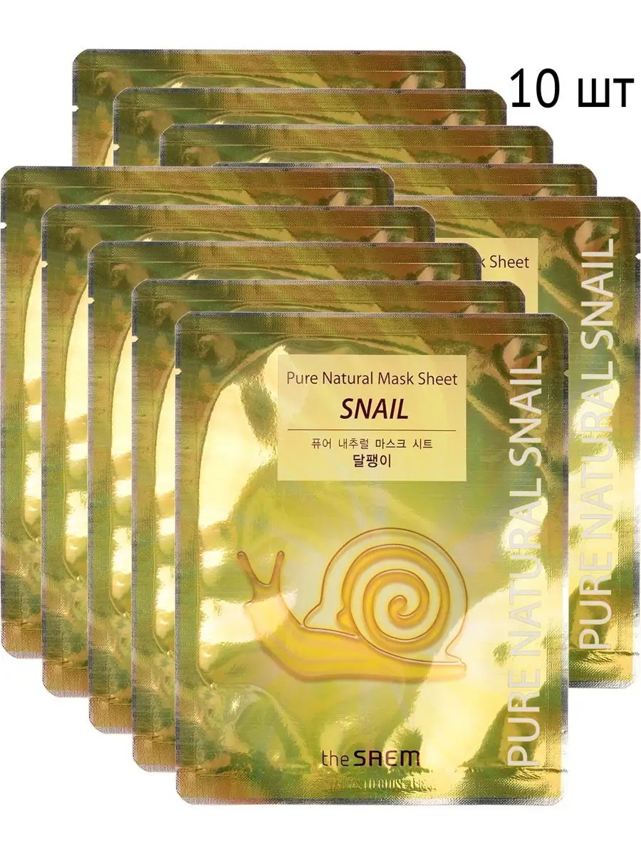 The Saem Pure Natural Snail Mask Sheet // This snail mucin sheet mask has a wonderful regenerating effect, restores skin structure, reduces wrinkles, moisturizes, and nourishes. This snail extract mask contains a full range of amino acids, allantoin, vitamins A, C, E, B6, B12, collagen, chitosan, and elastin. After using the mask, your skin will feel firm, velvety, and radiant with health. Suitable for all skin types. // Directions: Apply the mask to cleansed skin and leave on for 20-30 minutes. Then remove the mask and gently massage your face until completely absorbed. Before use, cool the mask (in cold water or the refrigerator) or warm it in hot water, if desired. Do not heat above 60 degrees.