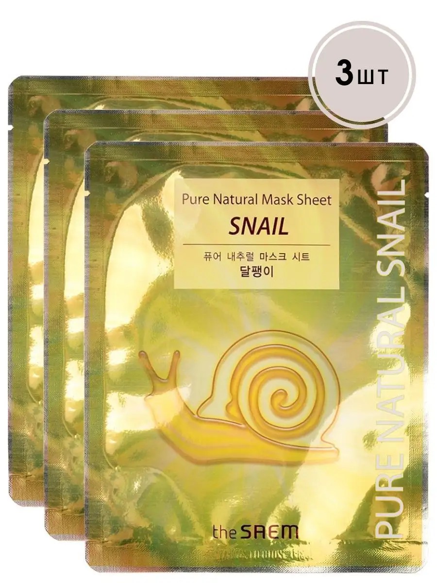 the SAEM Pure Natural Mask Sheet Snail Маска тканевая с муцином улитки // Маска тканевая с муцином улитки обладает великолепным регенирирующим действием, восстанавливает структуру кожи, уменьшает морщинки, увлажняет, питает. Маска с экстрактом улитки содержит полный набор аминокислот, аллантоин, витамины А, С, Е, В6, В12, коллаген, хитозан, эластин. После применения маски, кожа лица становится подтянутой, бархатной и сияющей здоровьем. Подходит для всех типов кожи. // Способ применения: Нанесите маску на очищенную кожу лица и оставьте на 20-30 минут. Затем снимите маску, легкими похлопывающими движениями помассируйте лицо до полного впитывания маски. Перед применением маску можно охладить (в холодной воде или в холодильнике) или нагреть по желанию в горячей воде, не допускать нагревания выше 60 градусов.